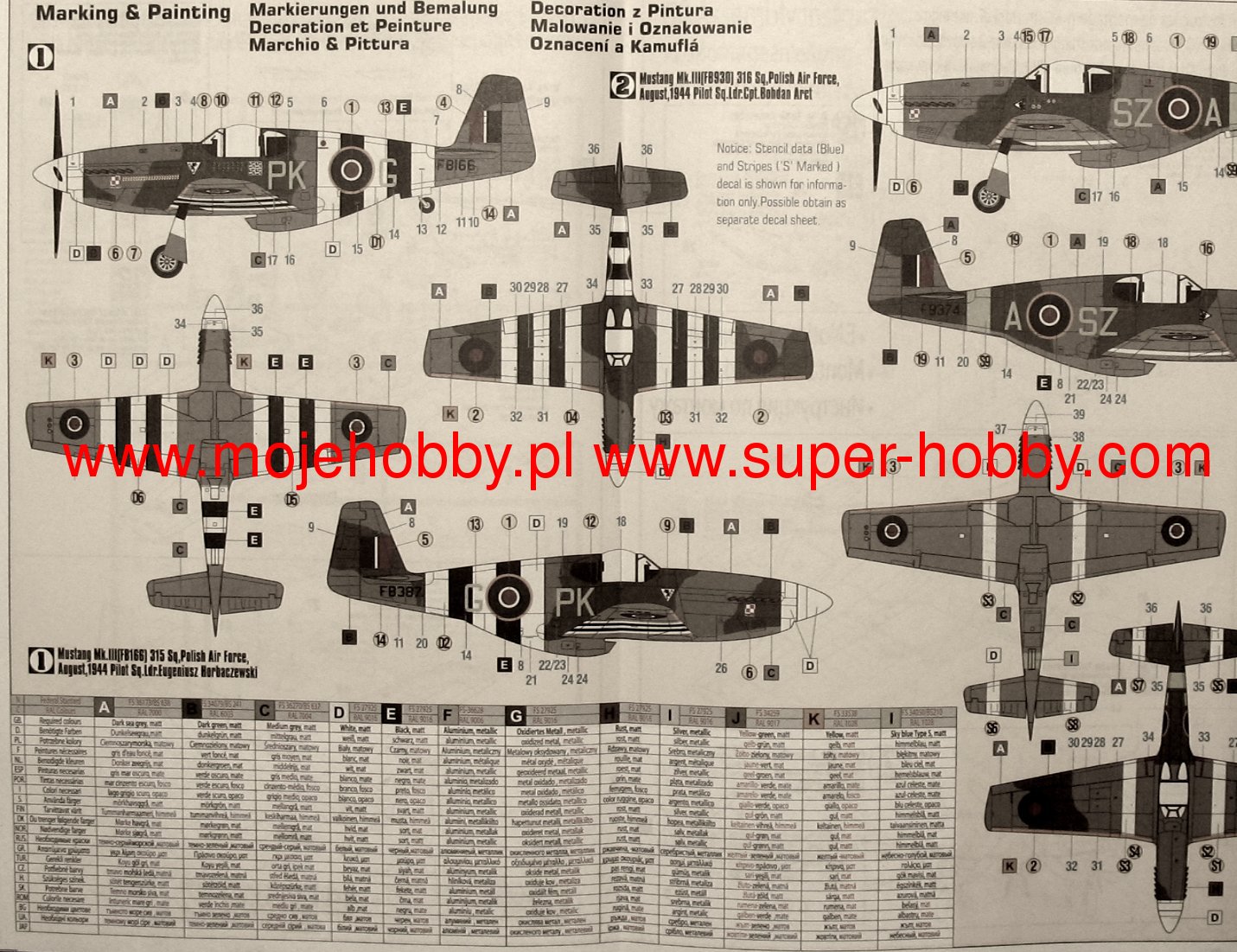 North American P-51 Mustang to amerykański, jednosilnikowy, samolot myœliwski dalekiego zasięgu oraz samolot szturmowy o usterzeniu klasycznym i konstrukcji w pełni metalowej. Oblot prototypu miał miejsce 26 paŸdziernika 1940 roku. P-51 Mustang zyskał reputację jednego z najlepszych, jeœli nie najlepszego, myœliwca z okresu II wojny œwiatowej. Wymiana silnika Allison V-1710-39 pochodzšcego jeszcze z pierwszego projektu na motor Rolls-Royce Merlin (wersja P-51 Mustang Mk.Ia) sprawiła, że o Mustangu jak nigdy wczeœniej można było mówić iż sięgnšł doskonałoœci. Jednomiejscowy myœliwiec zachwycał swojš prędkoœciš maksymalnš, zasięgiem, zwrotnoœciš, potęgš uzbrojenia. Kombinacja tych wszystkich najważniejszych dla oceny samolotu parametrów sprawiła, że Mustang sprawdzał się w praktycznie każdej powierzonej mu roli: zdobywał przewagę w powietrzu, eskortował, przeprowadzał misje zwiadowcze, atakował cele naziemne. O klasie konstrukcji œwiadczy fakt, że Mustang pozostawał w czynnej służbie aż do lat 70-tych! Jednš z najważniejszych wersji był P-51D, stworzony na podstawie P-51B. Otrzymał on kroplowš owiewkę kabiny, zapewniajšcš œwietnš widocznoœć, otrzymał też nowy silnik- Packard V-1650-7, co wydatnie poprawiło osišgi. Dane techniczne (wersja P-51D): długoœć: 9,83m, rozpiętoœć skrzydeł: 11,28m, wysokoœć: 4,08m, prędkoœć maksymalna: 703km/h, prędkoœć wznoszenia: 16,3m/s, zasięg maksymalny: 2755km, pułap praktyczny: 12800m, uzbrojenie: stałe- 6 karabinów maszynowych M2 kal.12,7mm , podwieszane-do 908 kg bomb lub 10 wyrzutni rakiet H.V.A.R kal.127mm. Uwaga: Firma Mistercraft często zmienia bez powiadomienia kalkomanie które są dołączone do modelu i mogą być one inne niż wynikające ze zdjęć i opisu na naszej stronie. Jeśli zależy Ci na konkretnej wersji powiadom nas o tym wpisując odpowiedni komentarz w polu uwagi podczas składania zamówienia. Note: Comany Mistercraft frequently changes, without any notice, the decals that come with the model, so they may differ from the photos and descriptions on our website. If you need a specific version, please let us know about that by entering the appropriate notice in the comments field when placing the order. Co oprócz modelu będę potrzebować do jego sklejenia?