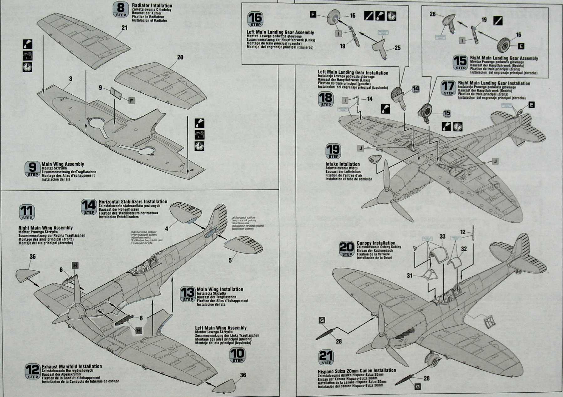 Note: Comany Mistercraft frequently changes, without any notice, the decals that come with the model, so they may differ from the photos and descriptions on our website. If you need a specific version, please let us know about that by entering the appropriate notice in the comments field when placing the order. Supermarine Spitfire is probably the most famous British fighter from the Second World War. It was an all-metal machine with a low wing configuration, characteristic elliptical wings, a classic tail and a retractable landing gear. The prototype flight took place on March 5, 1936. The Spitfire proved to be the RAF's staple of the war, which continued to do well after the war, remaining in production for 10 years. The history of the Spitfire began on the drawing desk of RJ Mitchell, Supermarine's lead designer. The first machines went to RAF units in 1938, but when the Battle of Britain began in the summer of 1940, there were already 19 squadrons of modern fighters at the airfields - together with the slightly older Hurricanes of the Islands, 600 aircraft were defending. With the expansion of hostilities, the Spitfire served wherever the RAF operated in the Far East, North Africa and Italy, during the Normandy landings and fighting in France, and finally during the operation in Germany in 1945. For many Britons, he became a symbol of victory in World War II. This wonderful machine has at least a dozen production versions. The most important of them are, among others the first mass-produced Spitfire Mk.I powered by a 1030hp Rolls-Royce Merlin II engine. It was above all this machine that made such an excellent contribution to the Battle of Britain. Many versions of this model have been developed, including PR Mk IA (reconnaissance version) or PR.IG (armed reconnaissance version). Another interesting version was the Spitfire Mk.V with a Rolls-Royce Merlin 45 engine with 1440HP. Later, Merlin 50 engines were also assembled. Serial production of this version started in 1941 and was the RAF's response to the appearance of the Messerschmitt Bf-109F. Another very successful version is the Spitfire Mk.IX, powered by a Merlin 61 engine with a 4-blade propeller. It was created as an opponent to the Focke-Wulf Fw-190 and was put into production at the end of 1941. This version was modified many times and, for example, in 1944 it got a new gyro sight, an enlarged rudder or a different wing system. Another major version is the Spitfire Mk.XIV with a Rolls-Royce Griffon 61 engine and a five-bladed propeller. Serial production started in October 1943. One of the last series produced was the Mk.21 version. This version had a Griffon 61 engine, a strongly reinforced structure and sheathing, the wings were extended, increasing their flying surface. Mass production started in March 1945. Technical data (Mk.XIV version): length: 9.14m, wingspan: 11.23m, height: 3.05m, maximum speed: 717km / h, rate of climb: 18.5m / s, practical ceiling: 13,200m, range maximum: 1815 km, armament: fixed - 4 7.7mm machine guns and 2 20mm Hispano Mk II cannons, suspended - up to 225 kg of bombs.