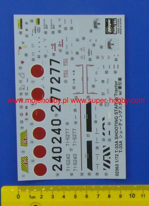 The Lockheed T-33 Shooting Star is an American, single-engine, full-metal low-wing training aircraft. The T-33 was created on the basis of the F-80 by remodeling the internal surface and adding a second pilot's seat. The first T-33 took off in March 1948. and production ended in 1959. 5,691 aircraft of this type were built. The T-33 was also used as a shield towing plane during shooting training. The RT-33A version was produced as a reconnaissance aircraft with a camera in the nose of the plane. The T-33 was widely exported to 39 countries around the world, including Germany, France, Belgium, Brazil and Canada. Technical data: length: 11.49 m, wingspan: 11.86 m, height: 3.57 m, maximum speed: 970 km / h, practical ceiling: 14 600 m, maximum range: 2050 km, armament: fixed - 2 M3 12 machine guns , 7mm, suspended - up to 907 kg of bombs.