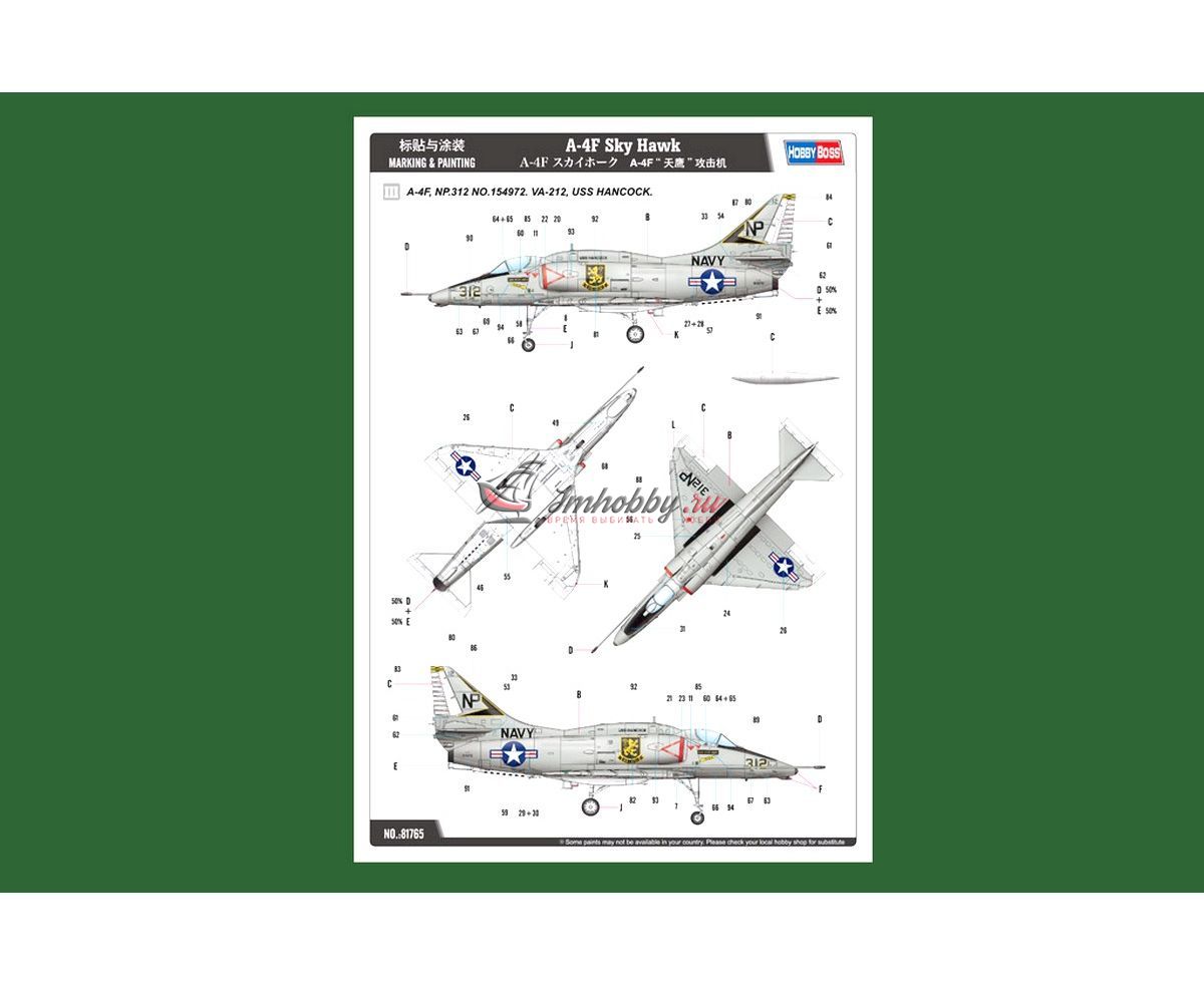 Сборная модель самолета A-4F Skyhawk в масштабе 1:48 от Hobby Boss. Характеристики модели: Длина - 182,6 ммРазмах крыльев - 116,2 ммКол-во деталей - 160+ штМасштаб - 1:48Декали в комплекте.Шины - пластик. Внимание! Краски и клей в комплект не входят.