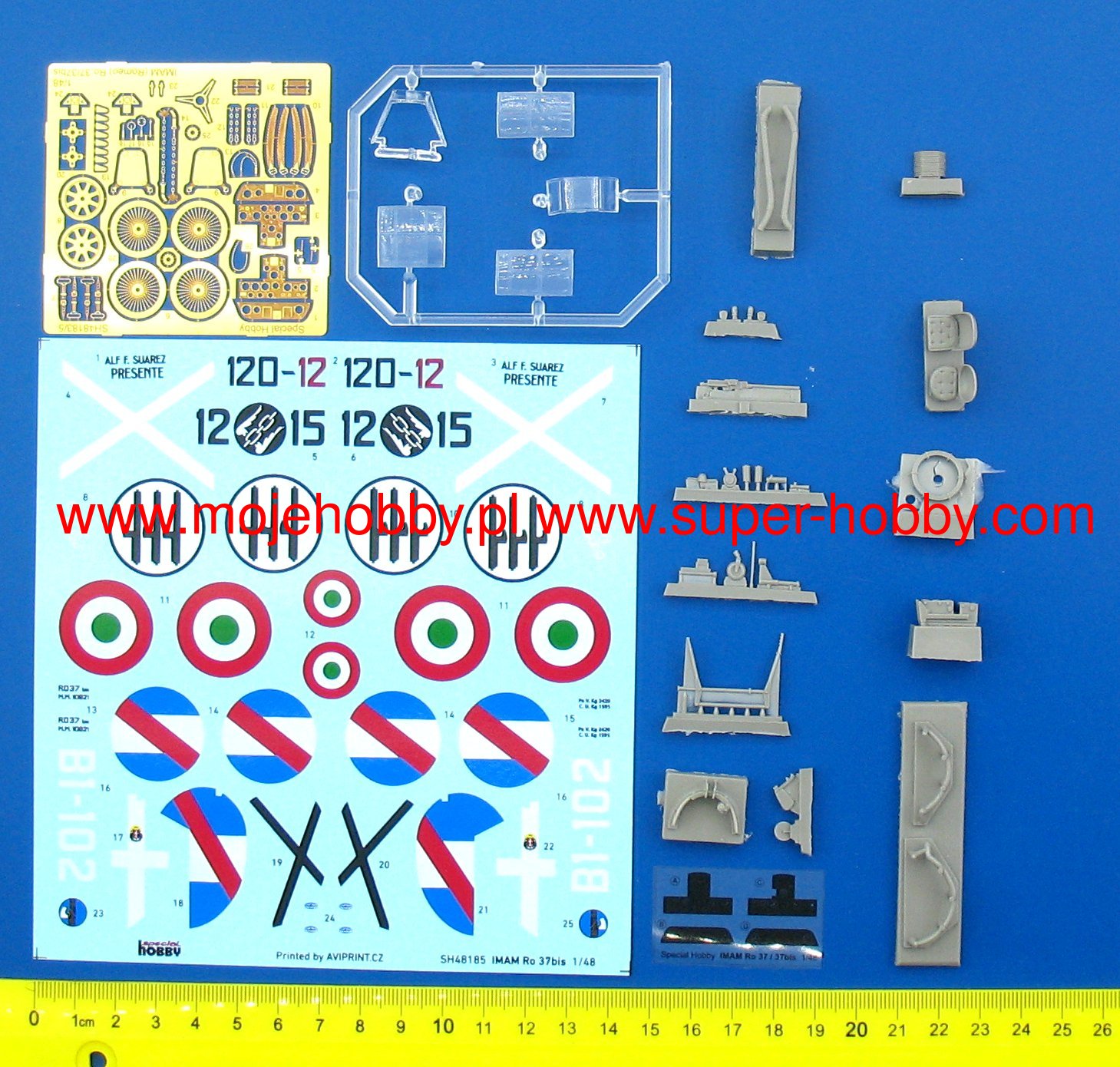 IMAM Ro.37 to włoski, jednosilnikowy, samolot rozpoznawczy i współpracy z armiš o konstrukcji mieszanej wytwarzany przez firmę Industrie Meccaniche a Aeronautuiche Meridionali z siedzibš w Neapolu. Oblot prototypu miał miejsce w listopadzie 1933 roku, a w czerwcu następnego roku ruszyła produkcja seryjna. Ro.37 cechował się niskš prędkociš maksymalnš oraz możliwociš operowania z lotnisk polowych, poza tym był w miarę niezawodny. Powstał w dwóch głównych wersjach: Ro.37 oraz Ro.37bis. Pierwsza z nich była napędzana silnikiem Fiat A.30 R.A, a druga posiadała już silnik Piaggio P.IX R.C o większej mocy. Poza tym, obie wersje nie miały znaczšcych różnic zewnętrznych. Samoloty tego typu wzięły aktywny udział w konflikcie włosko-abisyńskim (1935-1936) oraz hiszpańskiej wojnie domowej w lotnictwie nacjonalistów. Walczyły na poczštku II wojny wiatowej przeciwko Grecji i w kampanii bałkańskiej w 1941 roku. Od 1942 były jednak zastępowane przez Ca.311. Dane techniczne: długoć: 8,56m, rozpiętoć skrzydeł: 11,03m, wysokoć: 2,95m, prędkoć maksymalna: 320km/h, pułap praktyczny: 7200m, zasięg maksymalny: 1120km, uzbrojenie: stałe- 3 karabiny maszynowe Breda-SAFAT kal.7,7mm, podwieszane-do 180 kg bomb. Co oprócz modelu będę potrzebować do jego sklejenia?