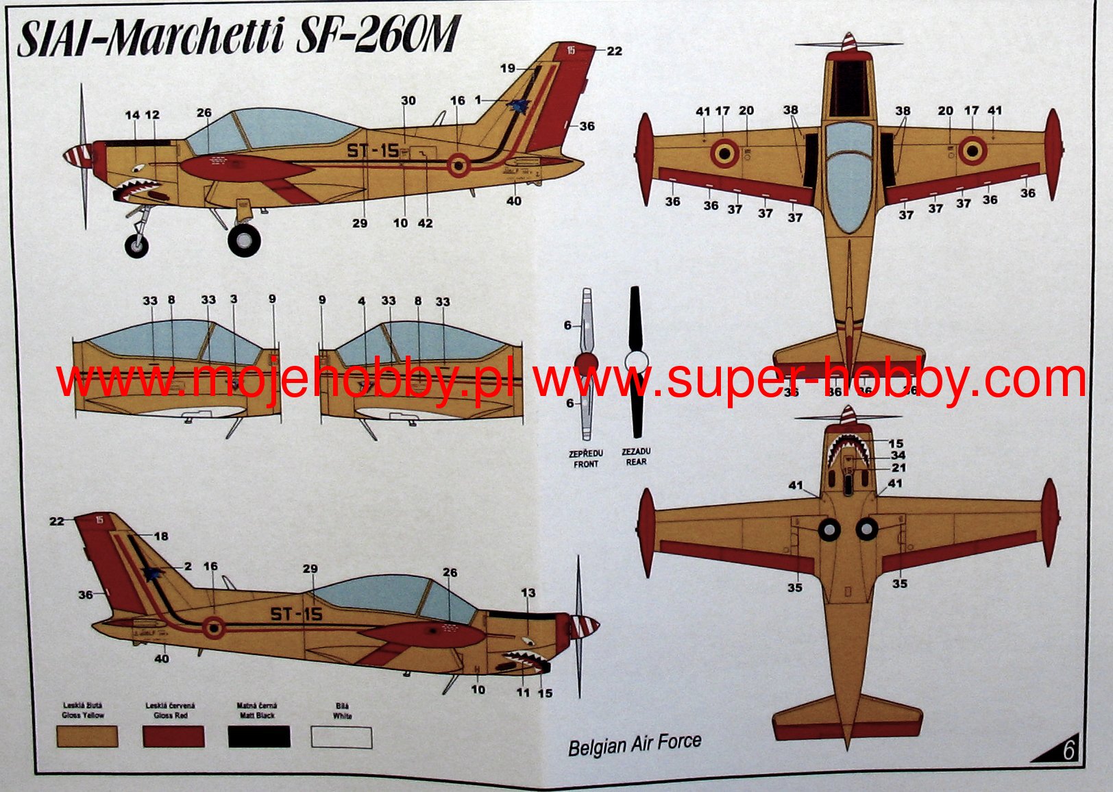 SIAI-Marchetti SF-260 jest współczesnym włoskim samolotem szkolno-treningowym i akrobacyjnym w układzie dolnopłata, z podwoziem chowanym w locie. Napęd - w wersji podstawowej - zapewnia pojedynczy silnik Lycoming O-540-E4A5 o mocy 260 KM. Oblot prototypu miał miejsce w 1964 roku. W tym samym roku rozpoczęła się produkcja seryjna, która z przerwami trwa do dnia dzisiejszego. W jej wyniku powstało ok. 900 egzemplarzy tej maszyny. SIAI-Marchetti SF-260 został opracowany przez włoskiego konstruktora lotniczego Stelio Frati dla zakładów Aviamilano. Jednak szybko po oblocie protypu prawa do jego zostały wykupione przez wytwórnię lotniczą SIAI-Marchetti, która z kolei od 1997 roku jest częścią koncernu Aermacchi. SF-260 okazał się konstrukcją bardzo udaną, stosunkowo tanią w produkcji i eksploatacji, a przede wszystkim cechującą się dobrymi właściwościami akrobacyjnymi i właściwościami lotnymi. W toku długiej produkcji seryjnej powstało wiele wersji te maszyny, m.in.: SF-260A (pierwsza partia produkcyjna), SF-260M (wersja o poprawionej aerodynamice), SF-260 SW (wersja przeznaczona do patrolowania wód przybrzeżnych) czy SF-260D (wersja ze zmienioną jednostką napędową i drobnymi zmianami konstrukcyjnymi). SIAI-Marchetti SF-260 został zakupiony przez wielu operatorów zagranicznych, jak na przykład: Belgia, Burundi, Czad, Etiopia, Indonezja, Meksyk czy Turcja. Co oprócz modelu będę potrzebować do jego sklejenia?