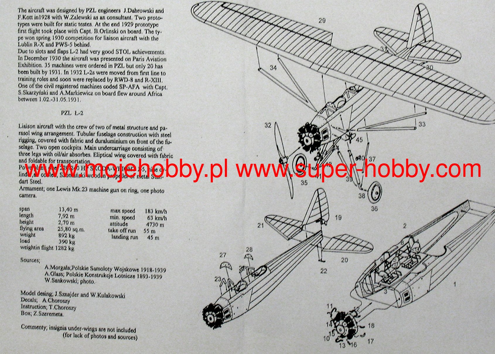 The PZL Ł-2 was a Polish liaison and accompanying aircraft of a mixed structure, in the high-wing configuration, with a fixed landing gear. The drive was provided by a single engine Wright Whirlwind J5A with 249 hp. The flight of the prototype took place in 1929, and in the years 1930-1931 serial production continued, ending with the production of about 30 aircraft of this type. The armament was one 7.7 mm Lewis machine gun. The PZL Ł-2 aircraft was created in response to the demand announced in 1927 by the Polish Ministry of Military Affairs for a new liaison and accompanying aircraft. PZL works, for which it was one of the first more serious constructions, applied several technical innovations in the machine, e.g. far-reaching mechanization of the main lobe. The PZL Ł-2 aircraft turned out to be a successful one, but with performance comparable to that of the Lublin R.XIII aircraft. The success of the latter was determined by lower production costs and easier operation. As a result, the PZL L-2 aircraft was produced in a relatively small number of copies. However, many of its elements (e.g. the wing structure) were used in the construction of the PZL-16 passenger plane.