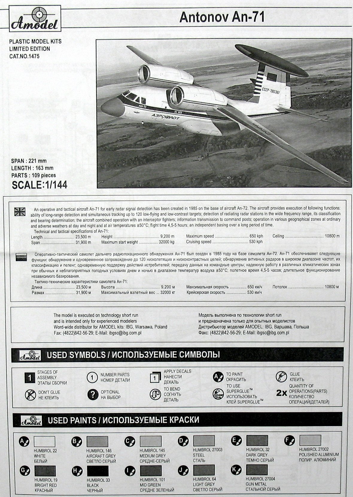 The Antonov An-71 (NATO code: Madcap) is a Soviet prototype aircraft for early warning and airspace surveillance. The machine was first flown in 1985. It was created in the arrangement of a high wing with a landing gear retracted in flight. The plane is 23.5 meters long with a wingspan of 31.89 meters. The drive is provided by: two D-436K turbofan engines and one RD-38A jet engine. The plane does not have on-board weapons. It is often assumed that the stimulus to initiate work on An-71 was the success of the Israeli air force using the E-2 Hawkeye early warning machines in the fight over the Bekaa valley in 1982. In order to shorten the time of research and development on the new machine, it was decided to use the An-72 plane as the carrier of the radar equipment, but the tail and wings of which were quite significantly modernized for a new role. The main element of the An-71 on-board electronics was the Kwant radar complex, which could simultaneously register 400 flying objects and track 120 of them. Despite the successful flight of the machine and the construction of three prototypes, work on the An-71 was canceled in 1990, largely due to financial problems related to the collapse of the USSR.