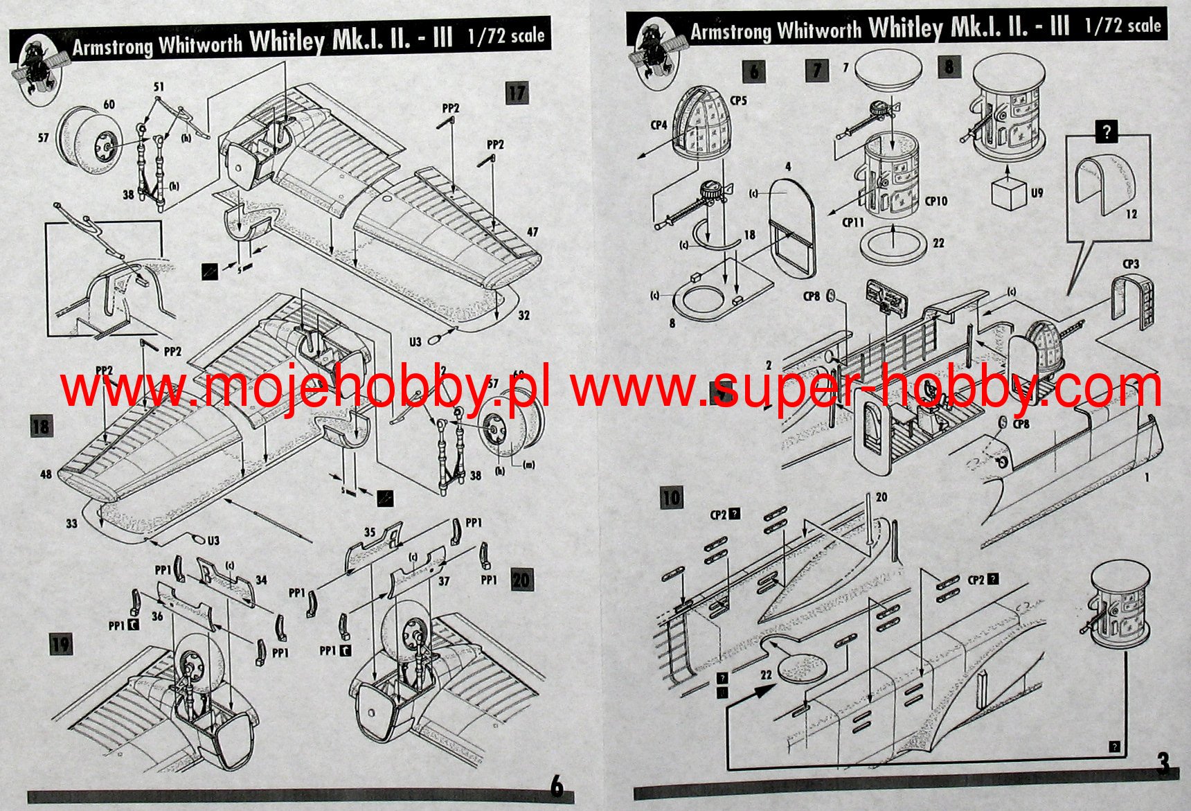 The Armstrong Whitworth Whitley was a British heavy bomber in the spine-wing configuration, with a landing gear retracted in flight from the Second World War. The drive was provided - in the basic version - by two engines Rolls-Royce Merlin X with 1075 hp each. The prototype flight took place in 1936. During serial production, which lasted in the years 1936-1943, approximately 1,800 examples of this aircraft were produced. The armament was (in the Mk. I version): two 7.7 mm machine guns and a load of up to 1514 kg of bombs. Armstrong Whitworth Whitley was developed as part of RAF Command requirements for a new heavy night bomber. When designing the new machine, Armstrong Whitworth relied on a transport plane of its own production designated as AW23 and on prototypes of the AW30 bomber. In 1936, the result of the company's work was approved by the British Air Force, and the new bomber went into mass production, quickly becoming a supplement to the Vickers Wellington bomber. During it, several development versions of the Armstrong Whitworth Whitley machine were created. One of the first was the Whitley Mk. II, which was powered by new, more powerful engines. Shortly thereafter, the Whitley Mk. III, which had clearly enhanced protective armament. The Whitley Mk. V, in which the shape of the vertical stabilizer was changed and the fuselage was extended. The specialized version equipped with radar and intended for maritime patrols was the Whitley GR Mk. VII. Whitley bombers in the period 1939-1942 actively participated in the strategic bombing of Germany, but from 1942 they were gradually moved to training and transport tasks. Coastal defense planes remained in line until 1943. The final withdrawal of this type of aircraft took place in 1945.