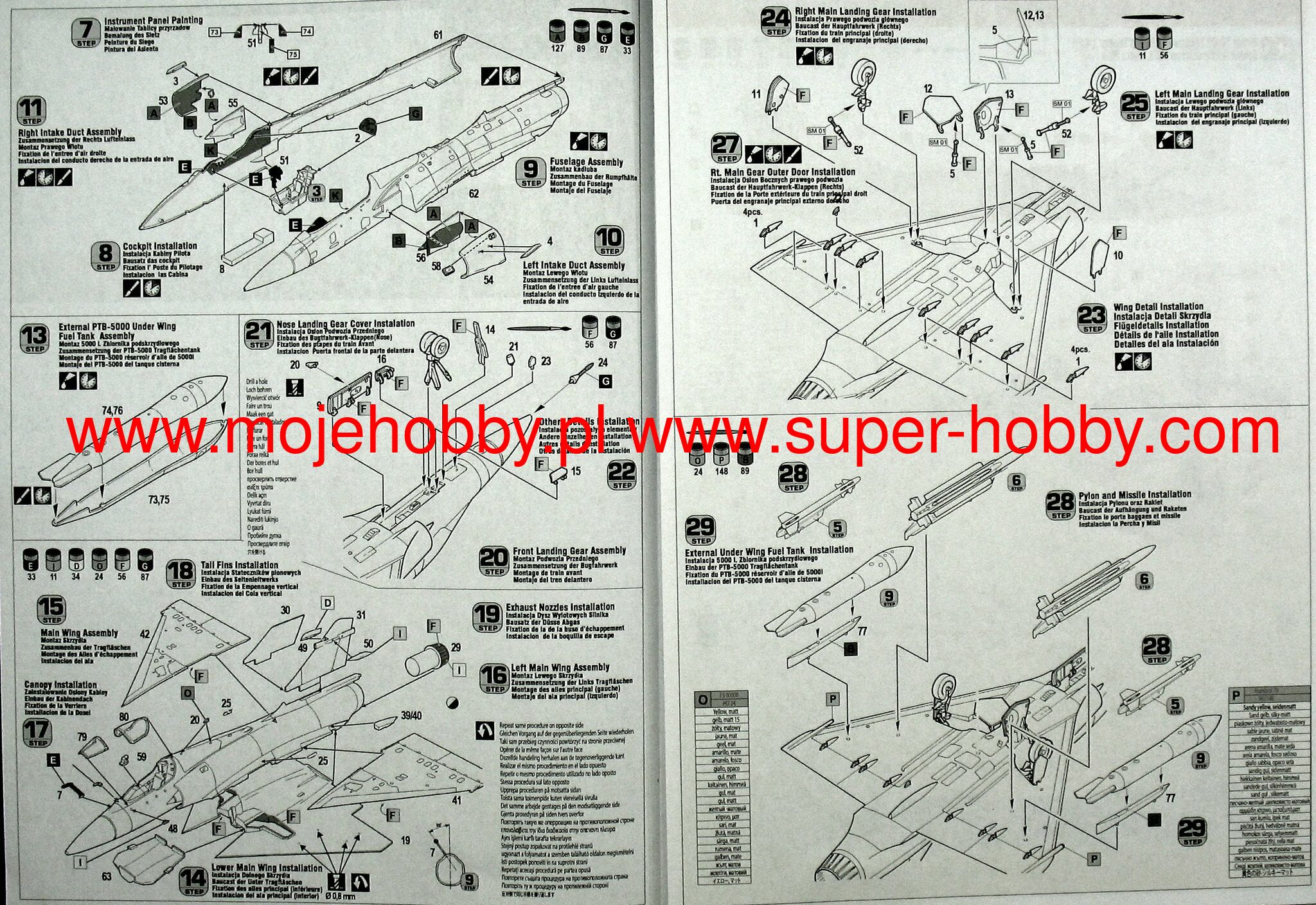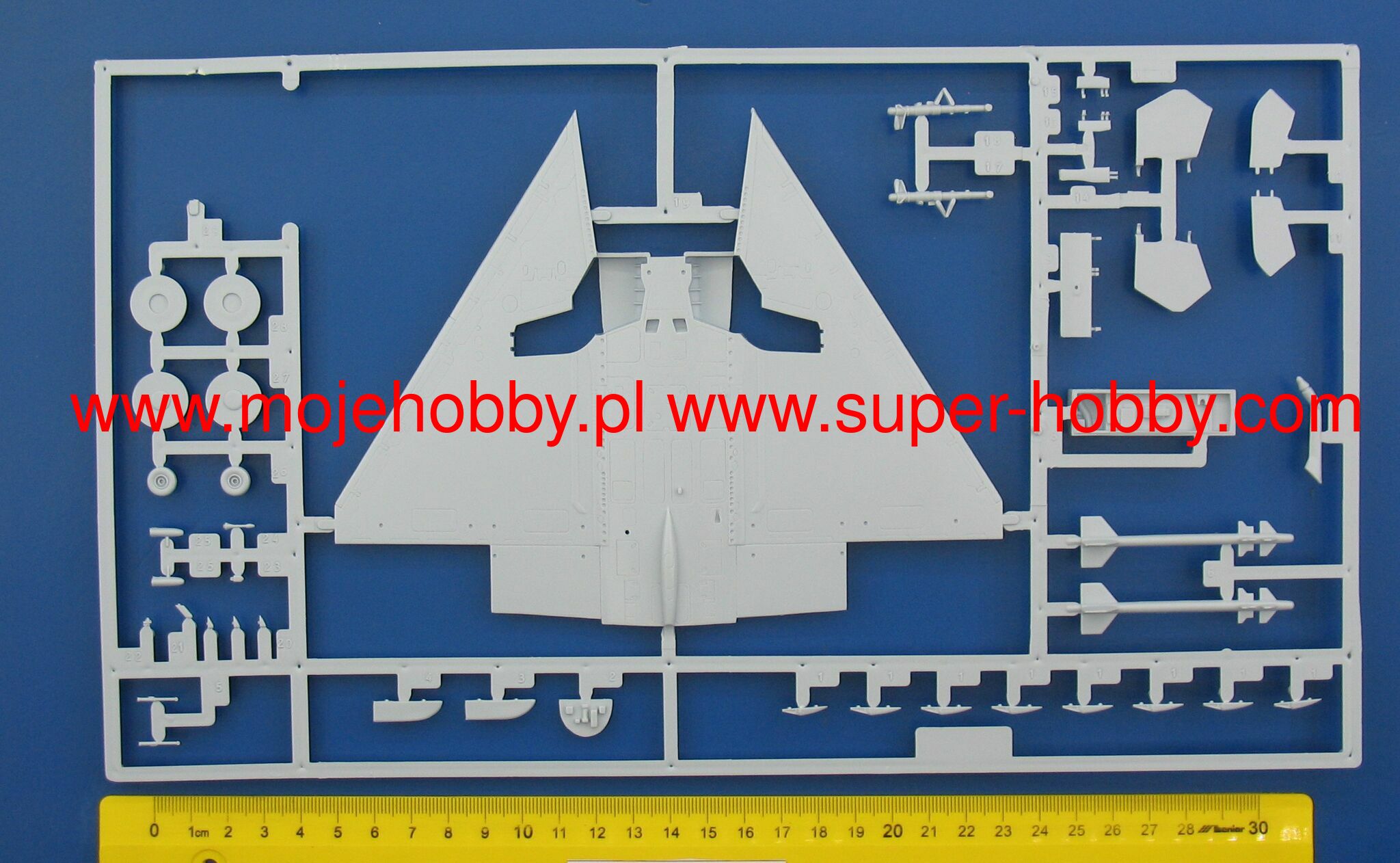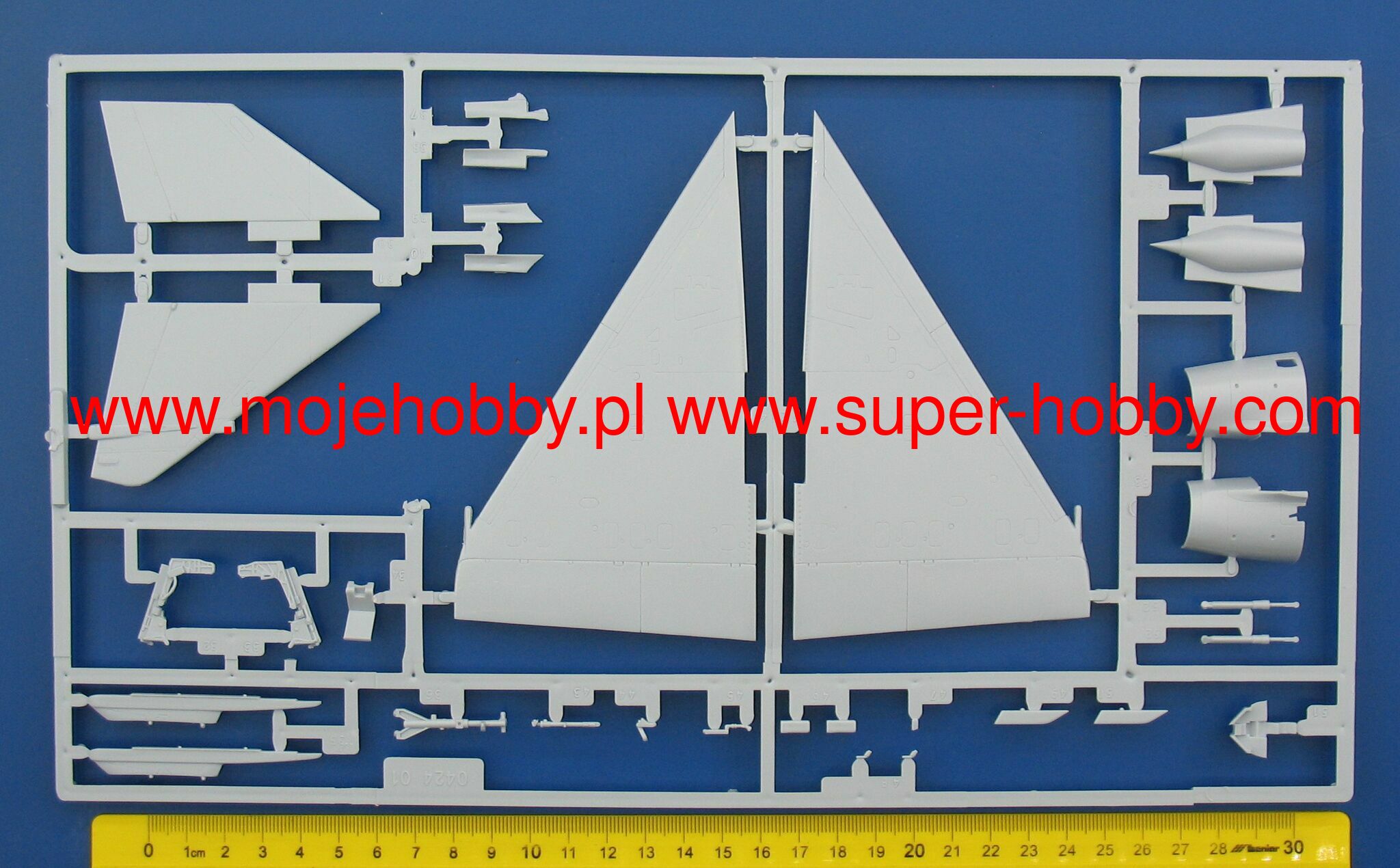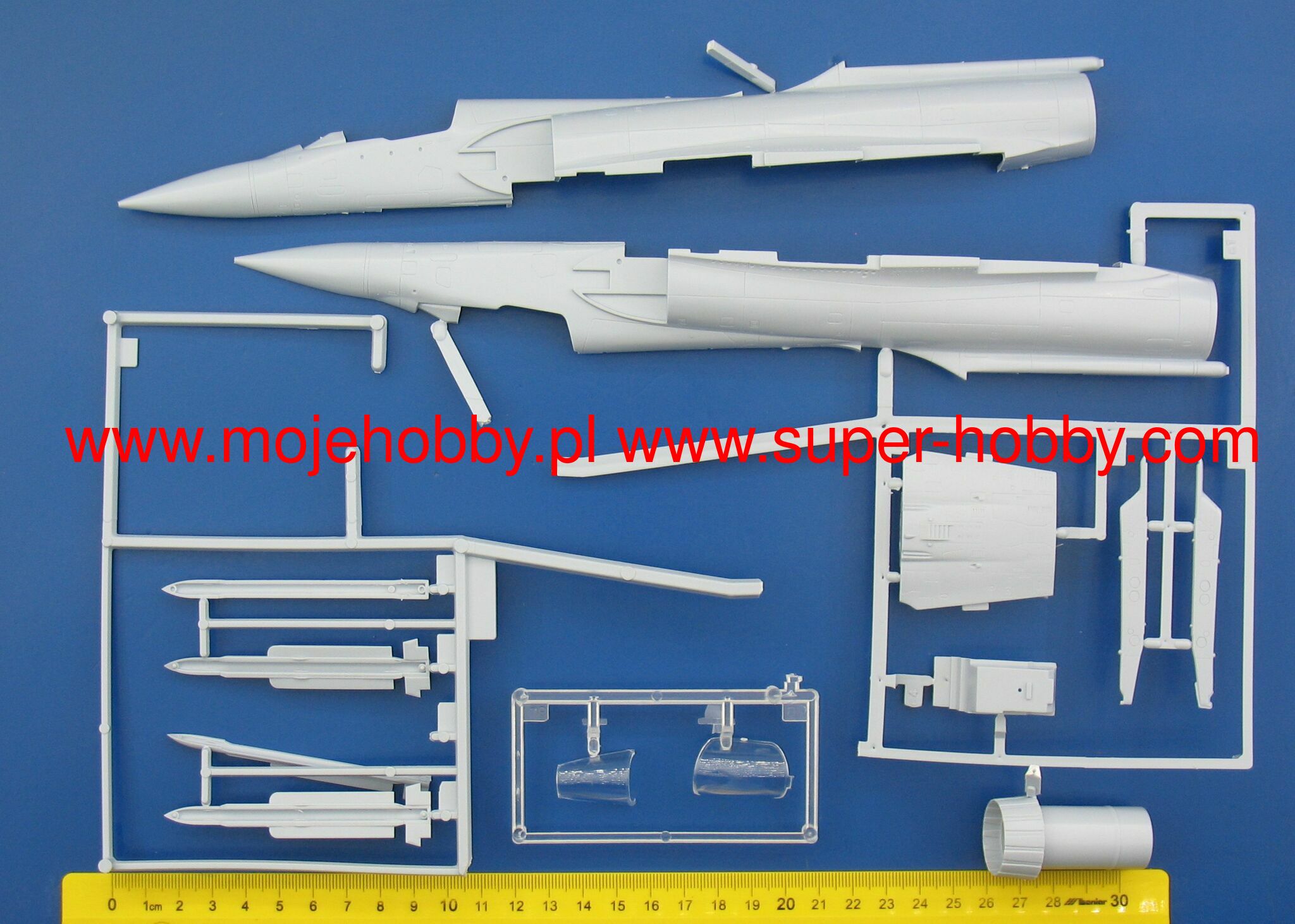 Note: Comany Mistercraft frequently changes, without any notice, the decals that come with the model, so they may differ from the photos and descriptions on our website. If you need a specific version, please let us know about that by entering the appropriate notice in the comments field when placing the order. The Dassault Mirage 2000 is a French, single-engine fighter-attack aircraft with delta wings in a low wing configuration. On December 18, 1975, the French government supported the launch of the new Dassault Mirage 2000 program, an aircraft as small as possible and with a 1: 1 weight-to-thrust ratio, using the SNECMA M53-3 engine. Mirage 2000 reverts to the triangular wing concept. Thanks to the fly-by-wire control and the location of the center of gravity far back, the plane was very maneuverable. The experience gained with the Mirage III resulted in an increase in the wing area, which resulted in a lower surface load and guaranteed better flight performance at low speeds. The use of an automatically lowered leading edge associated with the movement of ailerons resulted in a change of profile, which further increased performance and controllability at low speeds. Five prototypes were built. The first flew on March 10, 1978, and the fifth - Mirage 2000B (two-seater training version) in October 1980. The first serial Mirage 2000C flew on November 20, 1982. An interesting version is also the Mirage2000N, capable of carrying nuclear weapons. According to Dessault Mirage 2000, it is capable of intercepting a target flying at an altitude of 25,000 meters at 3Ma within four minutes after take-off from the airport. Mirage 2000 is equipped with military aviation, among others. in France, Greece, India, Brazil. Technical data (Mirage 2000C version): length: 14.36m, wingspan: 9.13m, height: 5.2m, maximum speed: 2.35Ma, climb speed: 284m / s, maximum range (with overhead tanks): 3335km , maximum ceiling 18000m, equipment: fixed - two 30mm DEFA 554 cannons, suspended - up to 6000 kg of cargo.