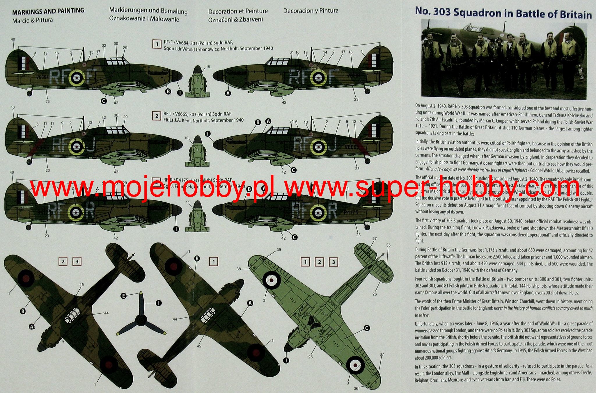 HAWKER HURRICANE MK. IA SQUADRON 303 BATTLE OF BRITAIN 1940 hobby 2000 1/72