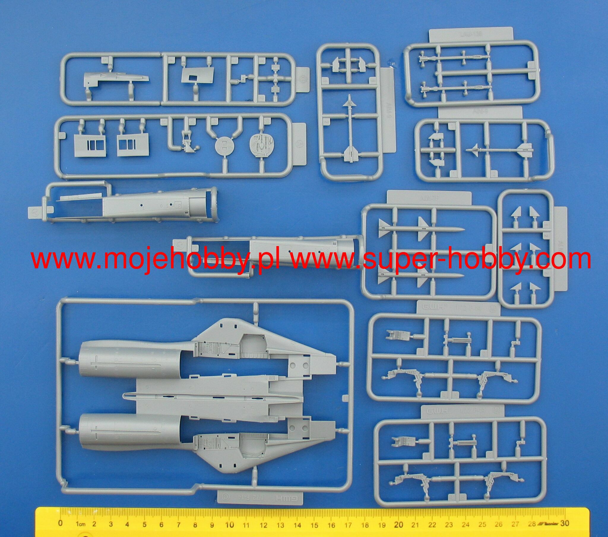 Designed as the U.S. Navy's primary fighter, the F-14 Tomcat could perform air superiority, escort, and strike missions and was undoubtedly one of the most sophisticated and technologically advanced aircraft ever to serve an aircraft carrier. The prototype machine was flown on December 21, 1970, and the first planes were delivered to the US Navy four years later. The last Tomcat planes were decommissioned only in 2006, which perfectly illustrates the high quality and great performance of this machine. The most innovative and characteristic solution for the F-14 are the wings with variable geometry. Controlled by computer or manually by the pilot, they can change their angle of attack from 20 degrees at minimum speed to 60 degrees at supersonic speeds. The changing geometry of the wings also allows for optimal positioning of the wings when maneuvering tightly, thanks to which this powerful aircraft exhibits amazing maneuverability. The heart of the Tomcat weapon system is the Hughes ANG-9 radar, usually cooperating with the AIM-54A Phoenix air-to-air missiles with a range of up to 180 km. Being able to track and attack more than one target is especially important. No less important element of the armament, as shown by the combat experience in the Vietnam War, is the cannon - in the F-14 mounted inside the M-61 Vulcan hull, firing up to 6,000 rounds per minute! Of course, you can also attach other types of weapons to the Tomcat, such as Sparrow, Sidewinder rockets or various bombs. The F-14 also owes a lot of its success to the excellent power unit in the form of a pair of Pratt-Whitney TF30 engines with a thrust of 9300 daN with afterburning. Technical data: Maximum speed: 2480 km / h, climb speed: 153 m / s, practical ceiling 17100 m, maximum range: 3200 km, armament: fixed - single, six-barrel 20mm M61-A1 cannon, suspended - up to 6580 kg cargo.