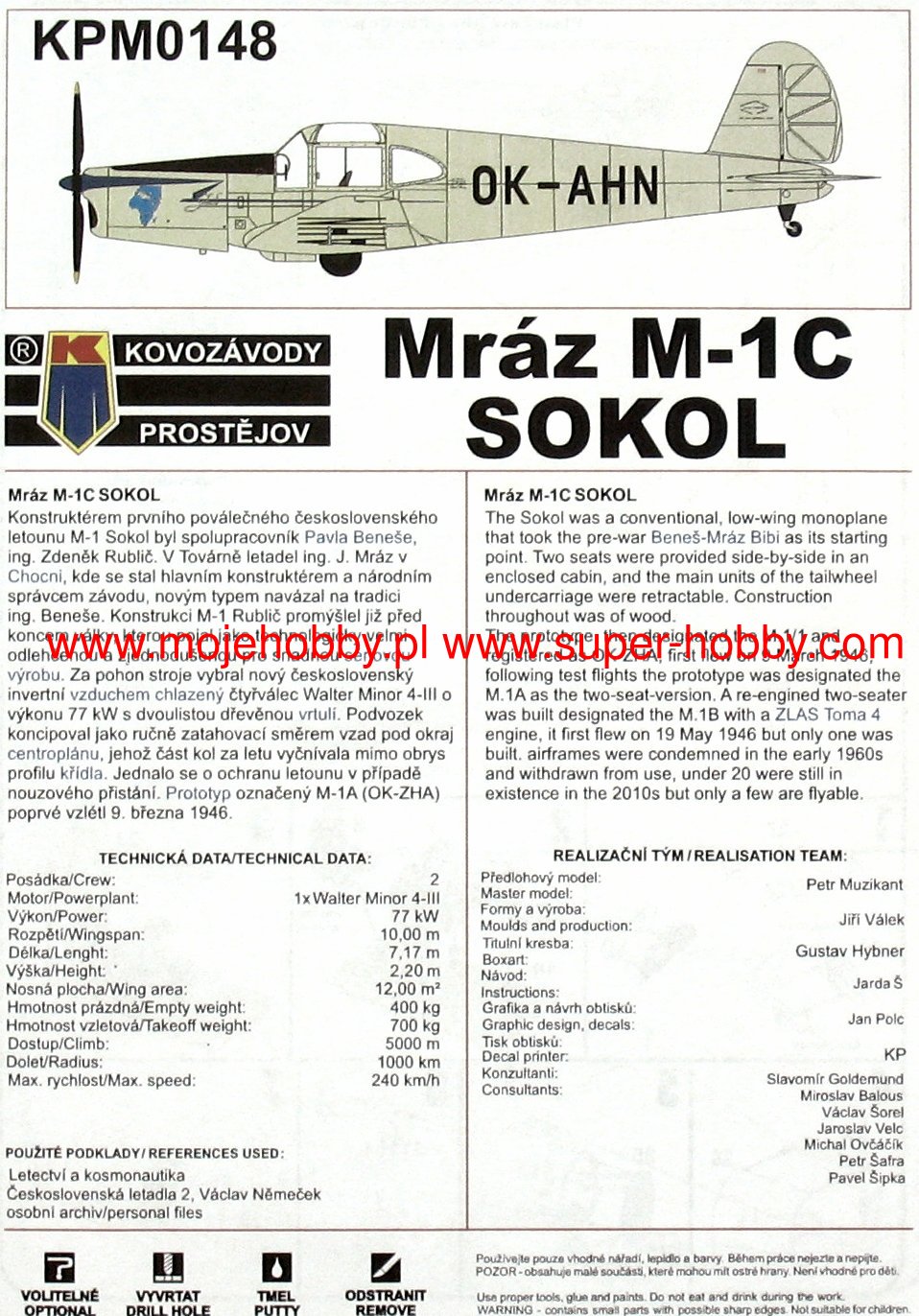 Мраз М.1 Сокол легкий чехословацкий связной и многоцелевой самолет послевоенного периода в низкоплане с классическим убирающимся шасси. Полет прототипа состоялся в 1946 году, и вскоре после этого началось серийное производство. В версии M.1 D привод обеспечивался одним двигателем Walter Minor 4-III мощностью 105 л.с. Длина машины составляла 7,35 метра при размахе крыла 10 метров. Самолет Mraz M.1 Sokol был разработан Зденеком Рубличеком во время немецкой оккупации Чехословакии во время Второй мировой войны. Отправной точкой для новой машины стал самолет Бенеш-Мраз Биби второй половины 1930-х гг. В целях снижения производственных затрат новая машина в значительной степени была изготовлена из дерева. В процессе производства было создано несколько версий Мраз М.1 Сокол, среди них: М.1 А (базовый прототип, двухместный), М.1 С (первый серийный вариант с трехместной кабиной) или М.1 Д (вариант с модернизированной кабиной и расширенное остекление). Самолет Мраз М.1 Сокол использовался в Чехословакии, а его единственным зарубежным получателем был Египет.