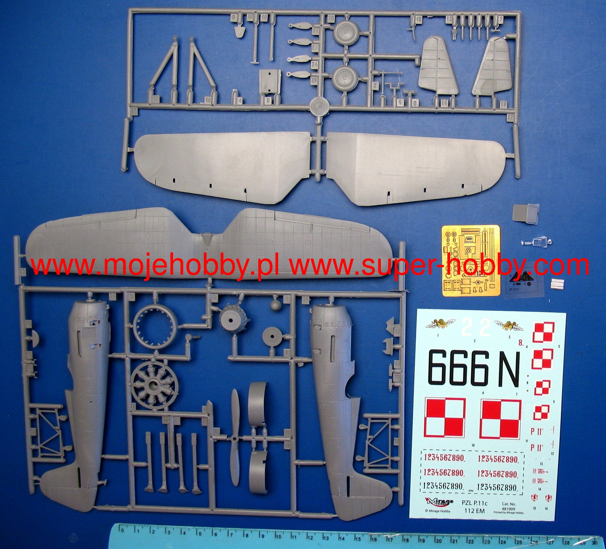 Download Mirage Hobby PDF catalogueThe PZL P.11a (the so-called eleven) is a Polish, single-engine fighter plane with a metal structure with Puławski wings, a classic tail and a fixed landing gear. The flight of the prototype took place in 1931, but serial production continued in 1937-1939. The first serial version is the PZL P.11a powered by the Bristol Mercury IV S2 engine with a power of 550 HP. However, it was treated as a transitional version and only 50 were ordered. The most famous version of the "eleven" - PZL P.11c - appeared in the summer. It had an improved fuselage, wings and a vertical stabilizer. It all improved the aerodynamics of the plane. The drive unit has not changed. The interest in the construction was expressed by, among others, Romania, where 95 units of the licensed PZL P.11 were manufactured at the IAR plants. At the outbreak of the war, all versions of the P.11 were much slower than their German opponents, but at the same time had greater maneuverability, high rate of climb and a less emergency engine than German planes. They had many victories over the enemy during the September campaign, mainly as part of the Pursuit Brigade. Technical data (version P.11c): length: 7.55m, wingspan: 10.72m, height: 2.85m, maximum speed: 367km / h, rate of climb: 14.5m / s, maximum ceiling: 8000m, range maximum: 550 km, armament: fixed - 2 machine guns wz.33 cal.7.92 mm.