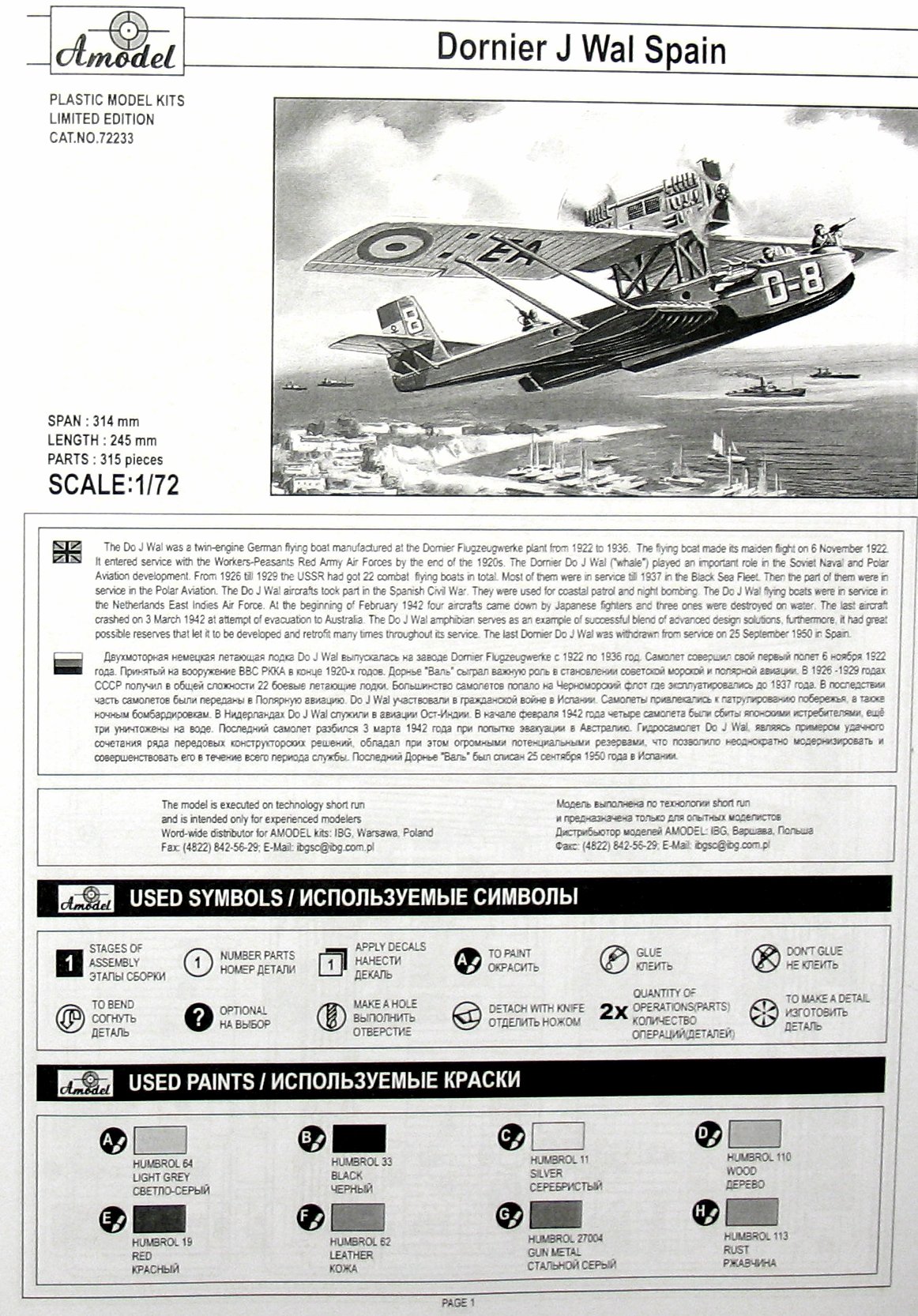72233 DORNIER DO J WAL SPAIN REPUBLICAN AIR FORCE a&a models 1/72