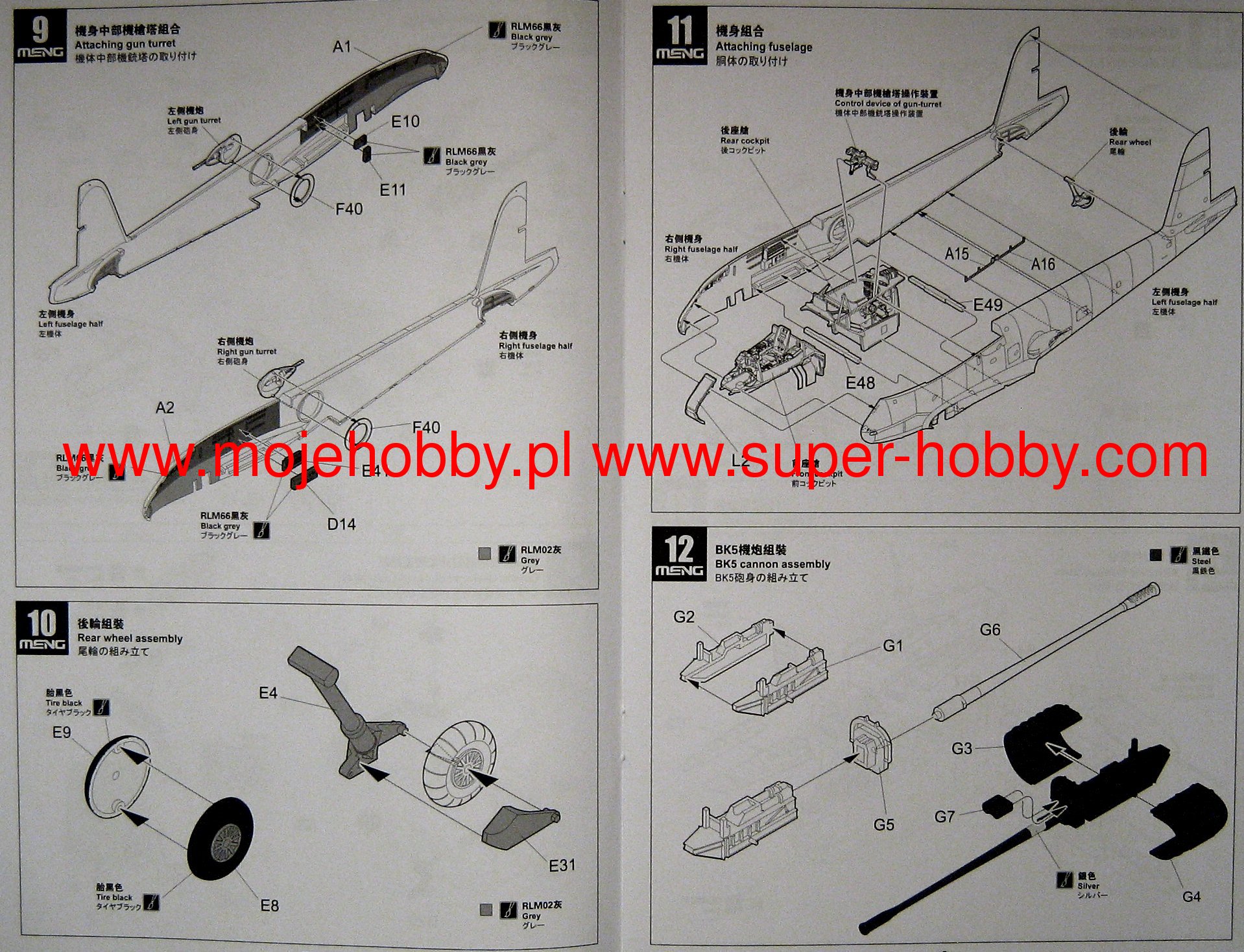 The Messerschmitt Me-410 Hornisse (German for hornet) is a German twin-engine fighter-bomber with a metal structure, in a low wing configuration with a classic tail. It was an airplane based on a modified Messerschmitt Me-210 airframe with an extended fuselage and slots, equipped with new Daimler-Benz DB 603A engines placed in longer nacelles. Compared to the Me-210, the leading edge angle of the wings was also reduced. The first prototype of the Me-410 was completed at the end of 1942. In order to test the new airframe, six Me-210A aircraft were rebuilt to the Me-410 standard, retaining the old propulsion units, ie Daimler-Benz DB 601 F engines. These were Me-210A-1 and Me-210A-2. The latter aircraft was then handed over to the Japanese and tested in this country for its suitability for imperial aviation. The development program of the Me-410 involved many other aircraft rebuilt from Me-210 airframes (e.g. Me-410 V22, which was a modification of Me-210A-0) and also built from scratch as Me-410 (e.g. Me-410 V18) . The prototype tests showed that the volatile properties of Me-410 significantly exceed Me-210. The new aircraft also performed better than the Messerschmitt Bf-110, which it was to succeed. Due to this fact, the RLM decided to implement the Me-410 into serial production. The aircraft was to be built in two basic variants: Me-410A-1 Schnellbomber (fast bomber) and A-2 Zerstörer (destroyer). Production of the Me-410A-1 began in January 1943 and the first units were put on the equipment of Luftwaffe units at the end of this month. The shooting armament of this version did not differ from that used in the Me-210 (two 20 mm MG 151 cannons and two 7.92 mm MG 17 machine guns placed in the front part of the fuselage, and two 13 mm movable MG 131 machine guns). The bomb armament was located in a compartment located in the forward part of the fuselage. The plane could carry one SC 1000 or SD 1000 bomb with a weight of 1000 kg, or two SC 500 bombs with a weight of 500 kg each, or up to eight SC 50 bombs with a weight of 50 kg each. The Stuvi 5B device, adapted to drop bombs from a diving flight, was used as a bomb sight. There were several Me-410A-1 modification kits. In the next version of the Me-410B, in the destructive variant, the aircraft was equipped with additional four 210 mm undirected missile launchers under the wing. Technical data: length: 12.4 m, wingspan: 16.39 m, height: 3.7 m, maximum speed: 624 km / h, rate of climb: 9.3 m / s, maximum range: 2300 km, maximum ceiling: 10000 m, armament: fixed - 2 MG131 13mm machine guns mounted in electrically controlled FDSL 131 / 1B mounts, 2 MG17 7.92mm machine guns and 2 MG151 / 20 20mm cannons, suspended - up to 1000 kg of bombs.
