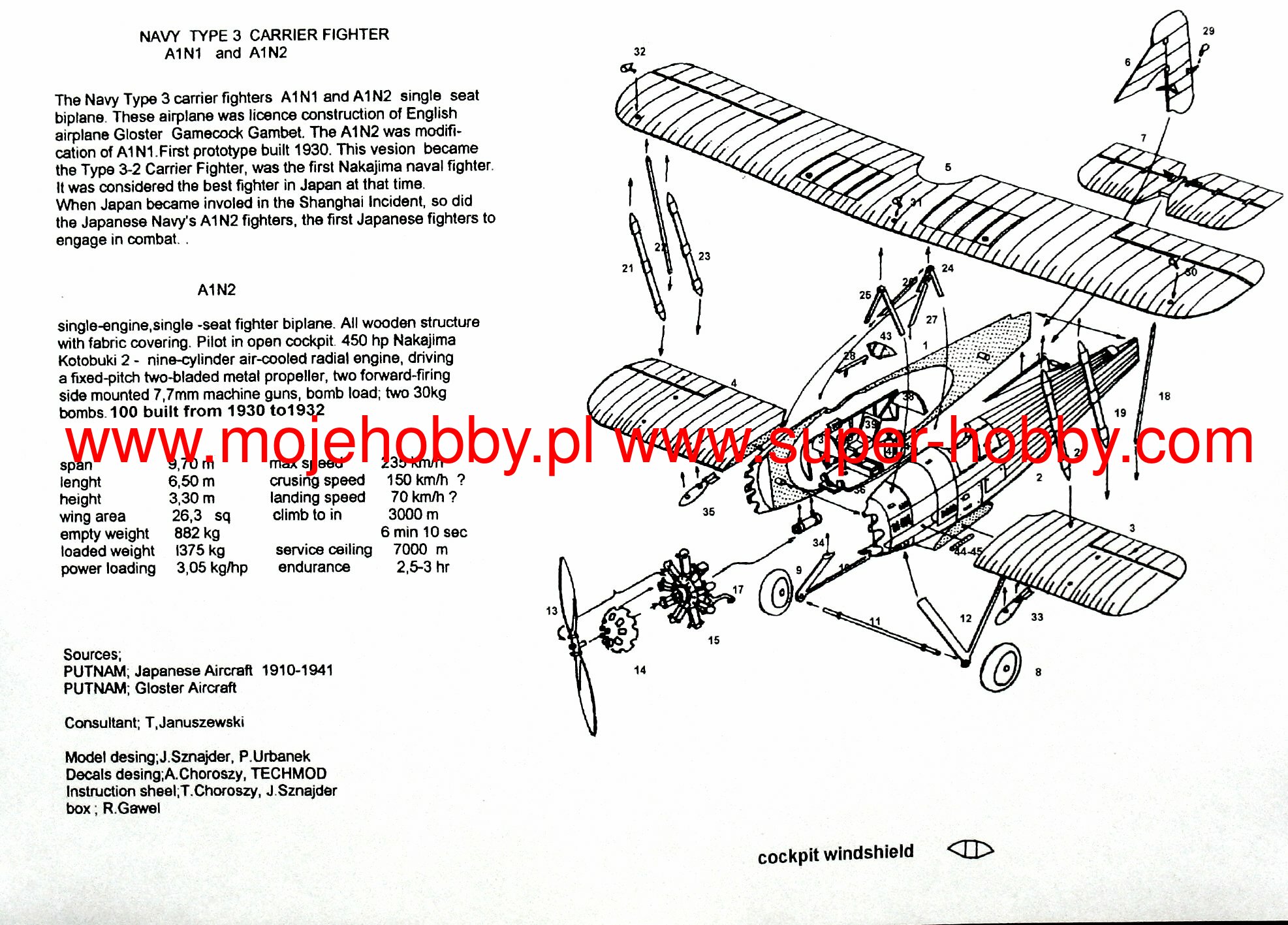 The Nakajima A1N was a Japanese, metal-structure, solid-undercarriage, biplane fighter from the interwar period. The drive was provided by a single engine: or a license version Bristol Jupiter VI or Nakajima Kotobuki 2 with 420 and 450 hp. The prototype flight took place in 1927. Two years later, serial production began, which lasted until 1932, which resulted in the production of about 150 examples of this aircraft. The deck armament consisted of two 7.7 mm machine guns. The Nakajima A1N was commissioned by the Japanese naval command, which needed a new in-flight fighter that could replace the Mitsubishi 1MF aircraft, which was already obsolete at the end of the 1920s. The Nakajima production plant decided to meet these expectations by adapting the design proven abroad - more specifically the Gloster Gambet plane. For this purpose, it purchased its license in Great Britain and began adapting its design to the conditions set by the domestic navy. In the course of serial production, two main development versions of this aircraft were created. The first one (marked A1N1) was powered by the licensed version of the engine Bristol Jupiter VI . However, the A1N2 version quickly appeared, which had improved aerodynamic properties and was already powered by the Nakajima Kotobuki 2 engine. Nakajima A1Ns began to enter the line in 1929 - the first copies were embarked on the Hosho aircraft carrier. Machines of this type also took part in the fights related to the so-called the Shanghai Incident in 1932. From 1935, they were replaced in line by Nakajima A4N fighters.