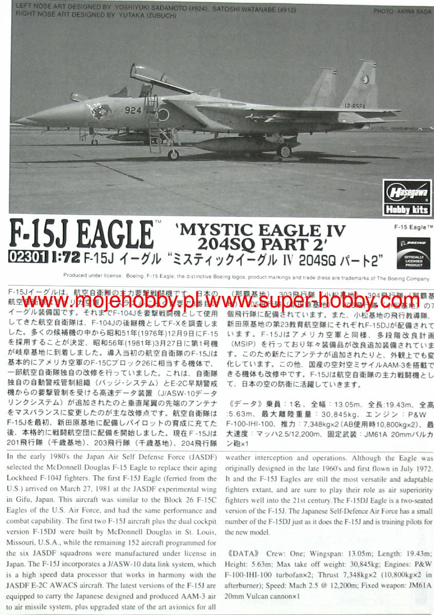 F-15J EAGLE 'MYSTIC EAGLE IV 204SQ PART2' hasegawa 1/72