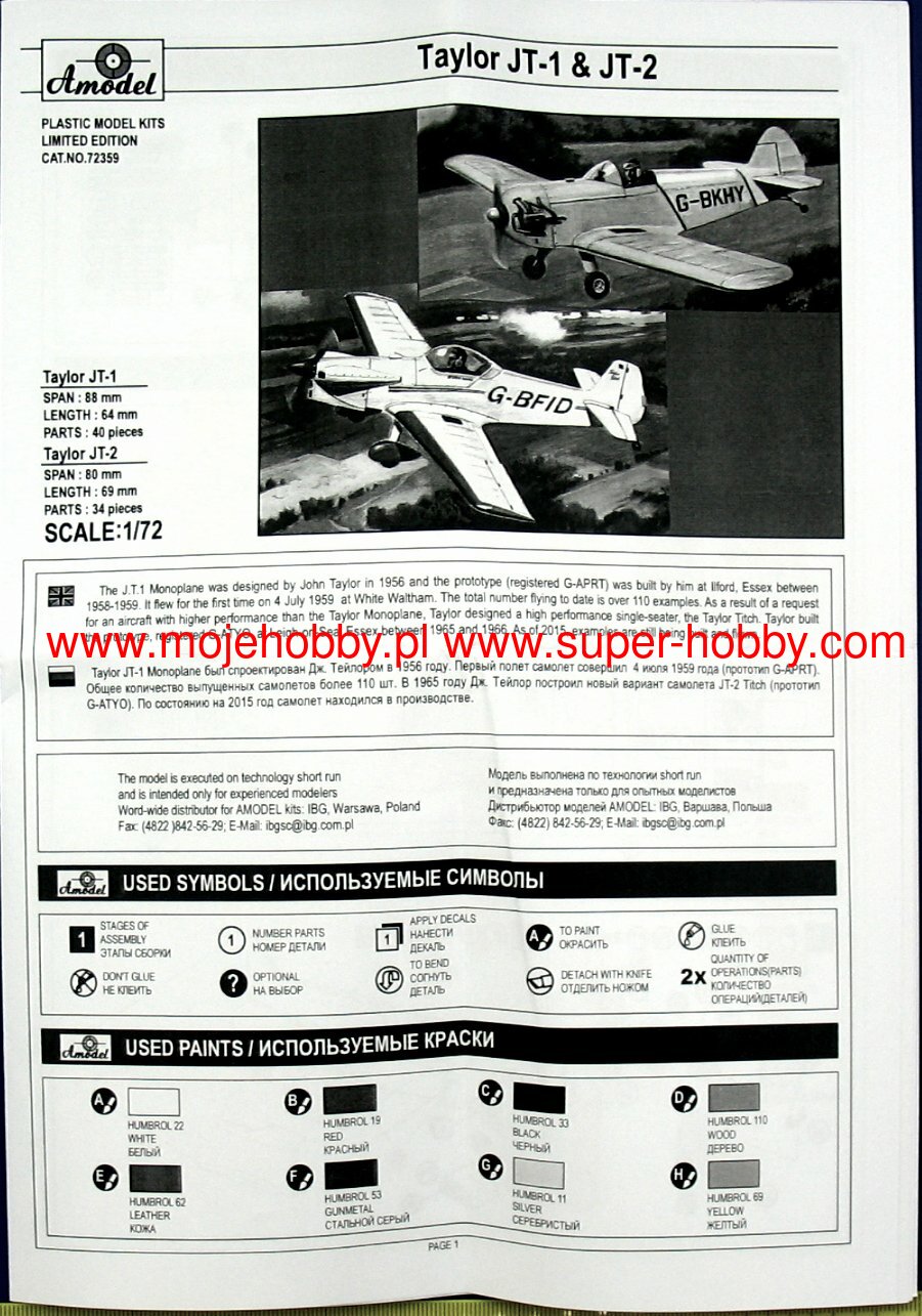 The Taylor JT-1 Monoplane was a British sports plane, sold in a DIY kit, in a post-war low wing design. The prototype flight took place in 1959. It is estimated that in the period 1960-2015, a total of approx. 110 sets of this aircraft were sold. In the basic version, the drive was provided by a single 38 HP JAP engine. The length of the machine was 4.57 meters with a wingspan of 6.4 meters. The maximum speed reached approx. 170 km / h, and the flight range slightly exceeded 350 kilometers. The JT-1 Monoplane was developed by John Taylor. The first sketches of the machine appeared in 1956, and three years later its flight test took place. The constructor wanted to create the cheapest possible aircraft - both in terms of production and operation. He also tried to make the plane as simple as possible to assemble by himself, which he largely succeeded. It is worth noting that the Taylor JT-1 Monoplane has good flight characteristics, and in the hands of a well-trained pilot, it is even capable of performing the most basic aerobatics! The JT-2 (Titch) aircraft was the successor of the JT-1 model.The Taylor JT-2 Titch is a British sports plane, sold in kits for self-assembly, in a low wing configuration. The prototype flight took place in January 1967. It is estimated that in the period 1967-2011, a total of about 40 sets of this aircraft were sold. Interestingly, it is still on sale! In the basic version, the drive was provided by a single Continental C85-12F engine with 85 HP. The length of the machine was 4.92 meters with a wingspan of 5.72 meters. The maximum speed was around 320 km / h. The JT-2 Titch plane was developed by John Taylor as a specific development of the JT-1 model. The new machine, compared to its predecessor, was characterized by a much more streamlined hull, better aerodynamics, but also had an engine with a clearly greater maximum power. All this contributed to the improvement of performance - especially flight speed and climb. Although in the end the JT-2 turned out to be a successful design, its designer died during its testing in 1967. However, the plane was put on sale thanks to the determination of John Taylor's wife and son.