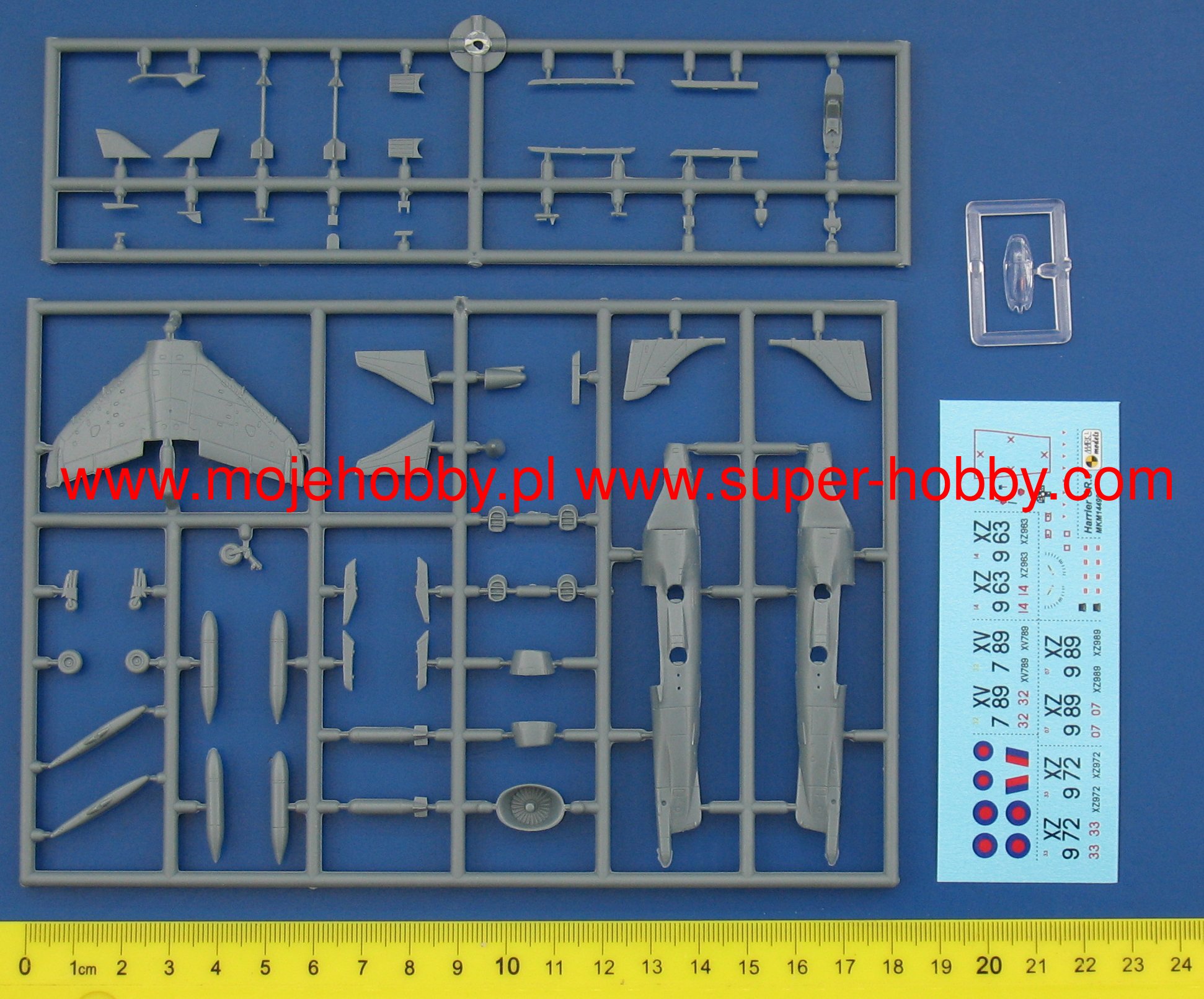 The BAe Harrier is a British single-seat V / STOL fighter, attack and reconnaissance aircraft with a duralumin, half-shell structure. The origins of Harrier's construction can be found in 1957, when Lord Sydney Camm of Hawker Aircraft and Dr. Stanley Hooker of Bristol Siddeley Engines started the construction of a tactical aircraft using the latest turbo-fan engine from Bristol plants, then known as BS.53. It was specially adapted to the vertical thrust vector ensuring the vertical take-off of a fixed-wing aircraft. Engine exhaust gases were directed to four staggered nozzles placed in pairs at the front and rear of the fuselage. The range of rotation of the nozzles exceeded 90 degrees, which allowed the exhaust gases to be directed directly rearward in normal flight, vertically downward for take-off and landing, or to any angle during the transition phase. Around the engine, Camm constructed a compact, conventional, high-wing metal airframe. In the forward part of the fuselage there was a one-person cabin, next to which there were two fixed, stationary air inlets for engines with a semicircular cross-section. The two-wheeled main and one-wheeled undercarriages are built in tandem in the central axis of the fuselage. The first of the six prototypes took off for the first time on October 21, 1960. After less than a year, a complete transition was made from vertical climb to horizontal flight and hover again. In February 1965, the UK government ordered six test aircraft. These were the first examples to be given the name Harrier. Apart from Great Britain, the only user of the standard Harrier aircraft is the Spanish Navy, where the aircraft are known as the Matador. To date, a dozen or so versions of the Harrier aircraft have been produced. Chronologically, the first was the Harrier GR.1 (an attack aircraft that entered service in 1969). Version T.3 was created quickly, i.e. a two-person school version of Harrier GR.1. The next version is the Harrier GR.3, which is the most modern assault version of this aircraft equipped with Pegasus 11 Mk 103 engines. Since 1978, the version marked as Sea Harrier has also been produced, the FRS.MK.1 model of which distinguished itself during the Falklands war. in 1982 as a fighter attack aircraft. As a result of the experience gained from this war, the FA.2 version was created, which has better avionics, including a great Blue Vixen radar, greater payload and can use a wider range of weapons. Technical data (GR.3 version): length: 14.37m, wingspan: 7.6m, height: 3.42m, maximum speed: 1185km / h, maximum climb speed: 254m / s, combat radius: 420km, armament : fixed - not equipped, suspended - up to 3176 kg of load.