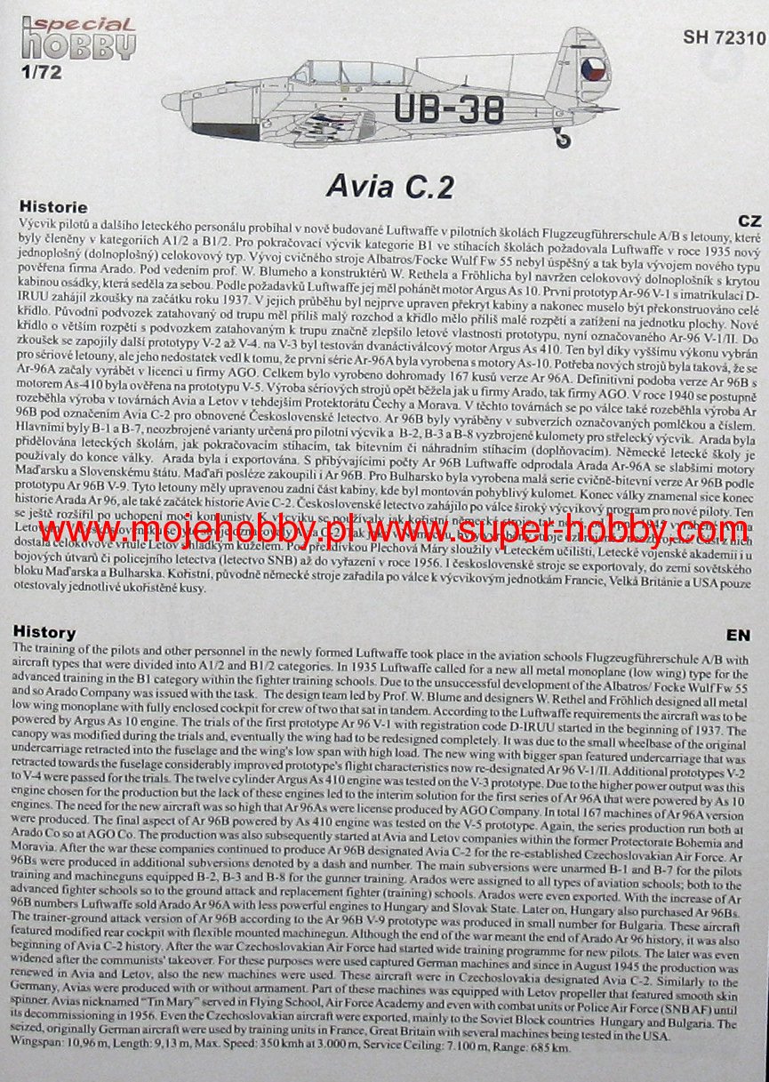 The Avia C-2 was a Czechoslovak low-wing training aircraft from the post-war period. Serial production of this machine was carried out in the years 1954-1948 or 1949. The drive was provided by a single Argus Ar-410A-1 engine with a capacity of 465 HP. The length of the aircraft was 9.13 meters with a wingspan of 10.96 meters. The top speed did not exceed 310 km / h. The deck armament - in the C-2B version - consisted of a single 7.92 mm machine gun. The Avia C-2 was de facto a relatively faithful copy of the German Arado Ar-96 aircraft from the Second World War, which was produced during this armed conflict in the then Protectorate of Bohemia and Moravia at the Avia and Letov plants. The Ar-96 aircraft turned out to be a very good machine for intermediate and advanced training, and despite the emergence (after 1945) on an increasingly larger scale of jet aircraft, it could still fulfill its role. For this reason, it was decided to start production of the Avia C-2 machine. The plane was based on the Ar-96B machine, but it should be added that individual examples often differed from each other in terms of equipment. They also served as machines for training pilots of fighter machines, bombers, but also for night and instrument-only flights. Aircraft of this type began to be withdrawn in the mid-1950s, and Yak-11 took their place.