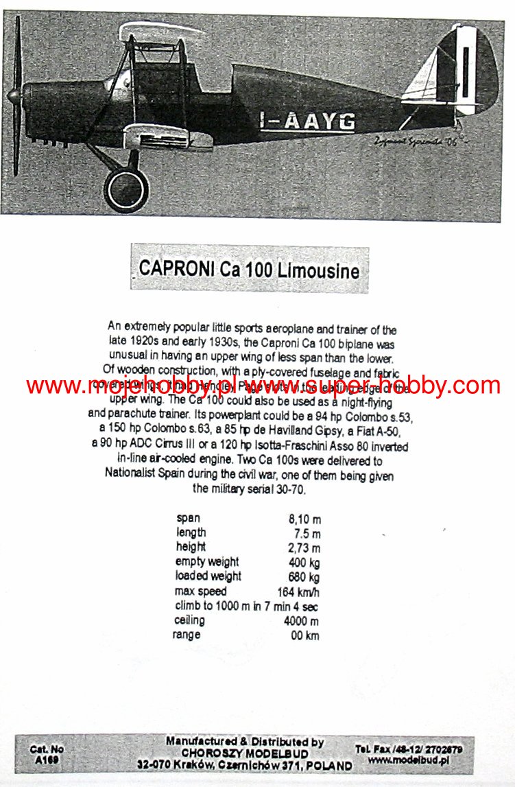 CAPRONI CA 100 LIMOUSINE choroszy modelbud 1/72