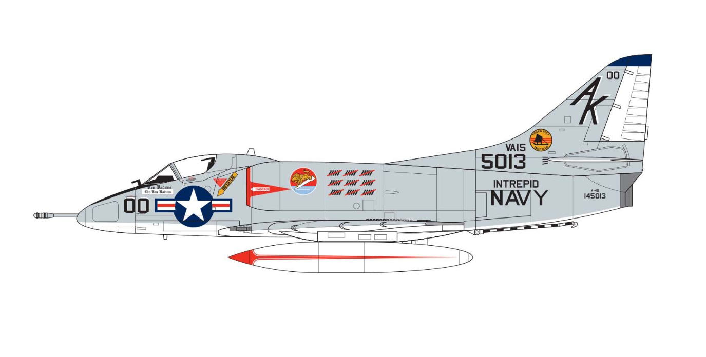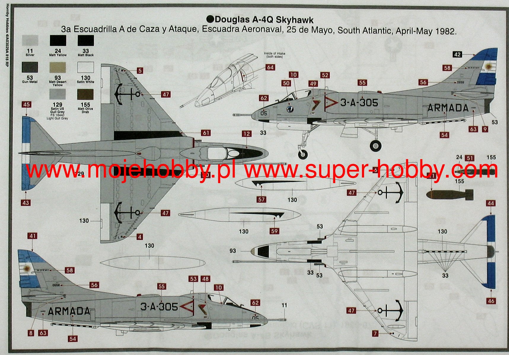 The McDonnell-Douglas A-4 Skyhawk is an American ground attack aircraft, the prototype of which was first flown in 1954. During the prototype trials in 1954, it broke the record for horizontal flight speed in its class of aircraft. The A-4 is a single-engine machine with a low-wing structure with a delta wing, which during use was characterized by high durability and resistance to damage, which won the recognition of pilots. Various versions of the A-4 Skyhawk aircraft took part in the Vietnam War, the Middle East conflicts (1967 and 1973) and the Falklands War (1982). They played a decisive role in the 1967 war, serving in the Israeli Air Force. The production ended in 1979, and so far approximately 2,900 combat versions and approximately 600 training versions have been produced. During the service, numerous versions were created, of which the A-4A (the first mass-produced version), A-4F (enhanced electronics), and A-4G (training version) should be replaced. Fixed armament: 2 Browning Mk 12 cannons (20 mm caliber); Suspended equipment (depending on the version) weighing from 3720 kg to 4155 kg. The plane exported, min. to Argentina, Australia, New Zealand and Singapore. Technical data: Top speed: 1075 km / h; climb speed 28-43m / s, practical ceiling 14900m, maximum range: 3305km.