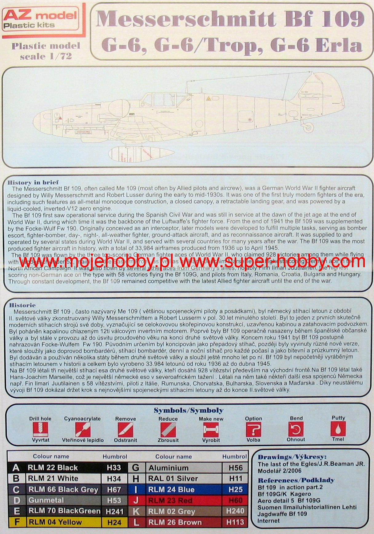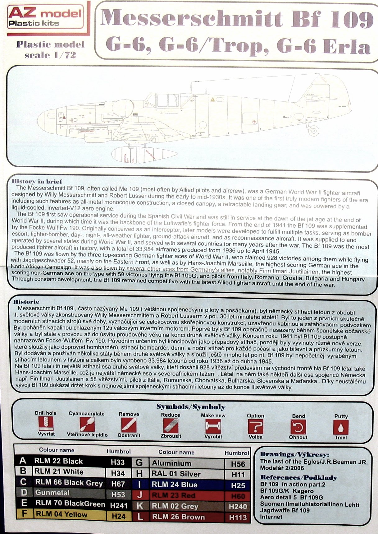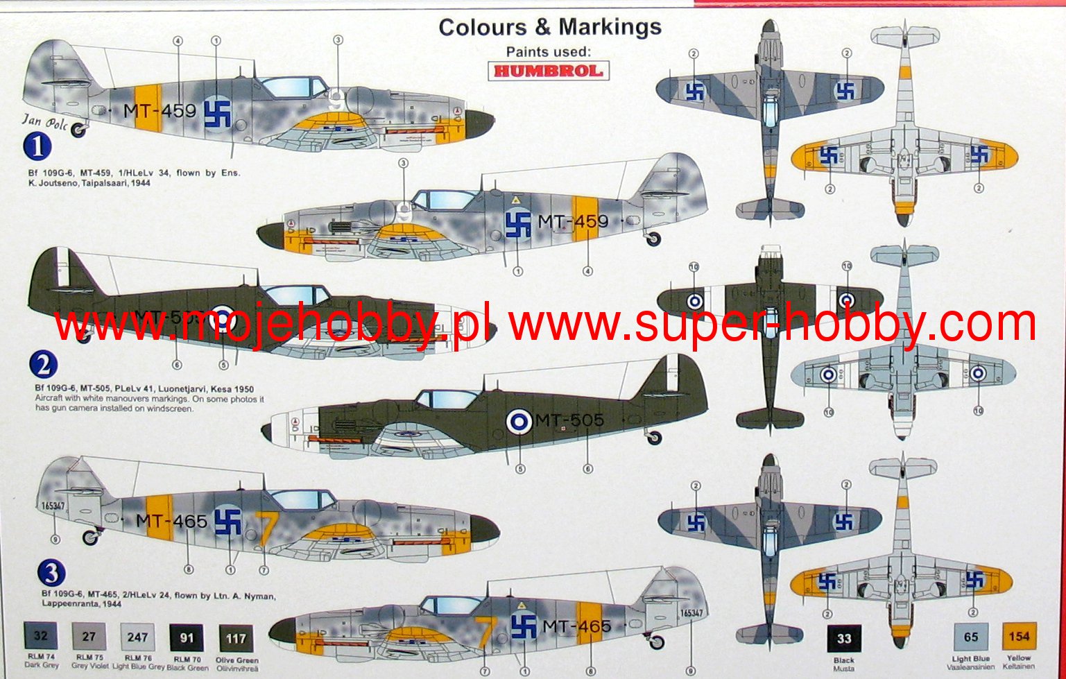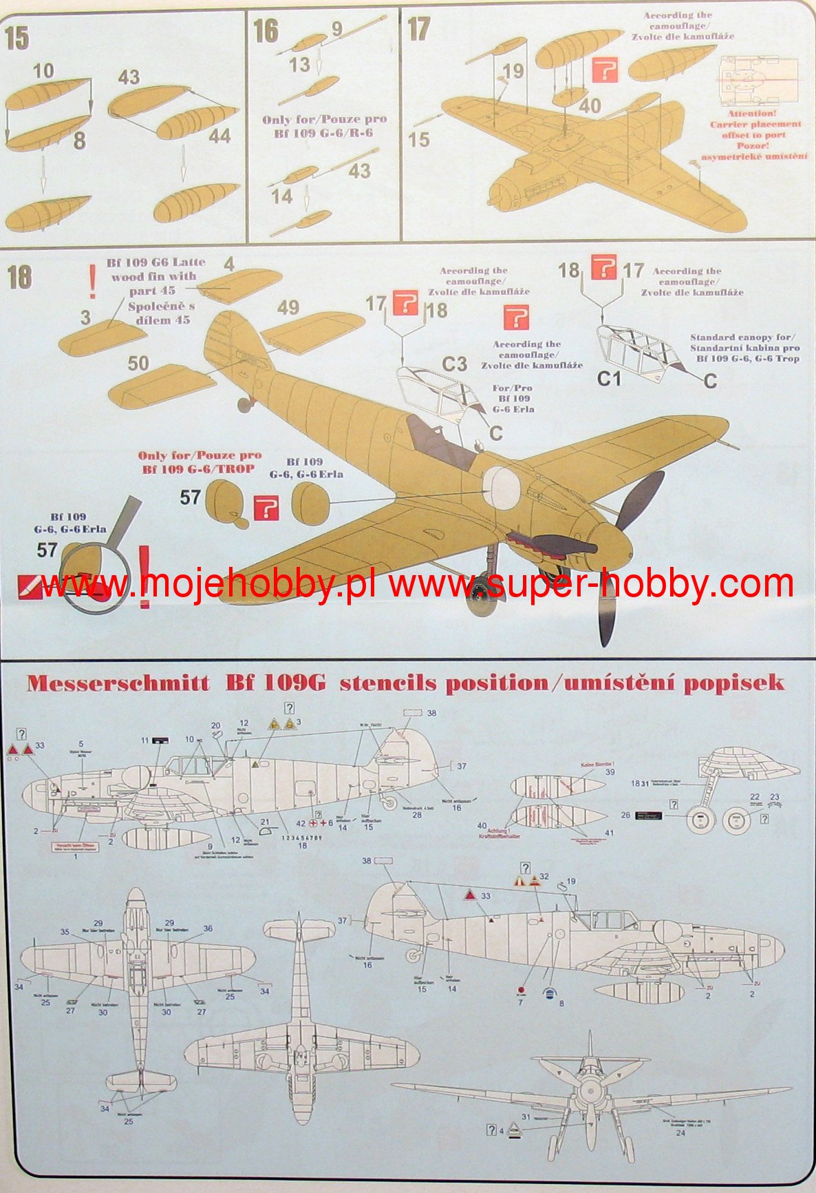 The Messerschmitt Bf-109 is a German metal-structure single-engine fighter in a low wing configuration with a classic tail. It turned out to be the basic and most produced Luftwaffe fighter during World War II. The flight of the prototype took place on May 29, 1935, and serial production continued in the years 1936-1945. In total, it is estimated that a total of about 35,000 Messerschmitt Bf-109 fighters of all varieties were produced, many of which ended up in the Czech and Israeli air forces after the war. The roots of the Bf-109 go back to the competition announced in 1933 by the Luftwaffe for a new fighter plane. In competition with the He-112, the Bf-109 project initially lost, but thanks to Willie Messerschmitt's intrigues, the project could continue and eventually he was the winner of the competition, becoming the Luftwaffe's primary fighter. Several main variants of the Bf-109 were developed in the course of production. The first pre-production series was the Bf-109B (Berta) with different versions of the Junkers Jumo 210 (A or Da) engine. They were tested in Spain from 1937 during the Civil War. The next version is the Bf-109C (Caesar). They had a different engine than the B version, and extensive armament consisting of two 20mm and 2 HP 7.92mm cannons. These machines also fought in the skies of Spain. The third version is the Bf-109D (Dora) with the Junkers Jumo 210 Da or Daimler-Benz DB 600 engine. It fought in the September campaign, but at the turn of 1939/1940 it was replaced by the E version. The most famous model was the Bf-109E (Emil) with a Daimler-Benz 601A or N engine. It was the first to use a three-blade, not a two-blade propeller. Bf-109E fought in the French campaign, over England, and in North Africa and on the Eastern Front. The ace who started his career on the Bf-109E was the famous Adolf Galland. The next version is the Bf-109F (Friedrich), which, according to the German pilots, was the most aerodynamically perfect. It sowed the changed shape of the fuselage, wings, cabin fairings, but no new engine was used. It was put into service at the turn of 1940/1941. As part of the development of the design, further Bf-109 specifications were developed, of which the G (Gustav) version was produced in the largest number of copies. The most important change increasing the machine's performance was the installation of a new 12-cylinder Daimler-Benz DB605A engine with 1475HP. The armament of the Bf-109G was a pair of 13mm machine guns located in the fuselage in front of the cockpit fairing, and the MG151 20mm or heavier MK108 30mm cannon. The last mass-produced version was the Bf-109K (Kurfirst), which production started in October 1944. A Daimler-Benz DB 605DB or DC unit was used as the engine. The Bf-109K was the fastest version produced during World War II, reaching up to 730 km / h. Apart from that, two versions were created - H and Z, but they were rather experimental versions and their mass production did not start. Subsequent improvements in propulsion and armament made the Messerschmitt Bf-109 one of the most dangerous fighters of World War II, and at the same time showed the great potential of the slightly angular airframe created by Willi Messerschmitt. Technical data (version Bf-109 G-6): length: 8.95 m, wingspan: 9.92 m, height: 2.6 m, maximum speed: 640 km / h, rate of climb: 17 m / s, maximum range: 850 km, maximum ceiling 12000m, armament: fixed - 2 MG131 13mm machine guns and 1 MG151 20mm cannon, suspended - 250 kg bombs, or 2 Wfr missile launchers. Gr. 21.