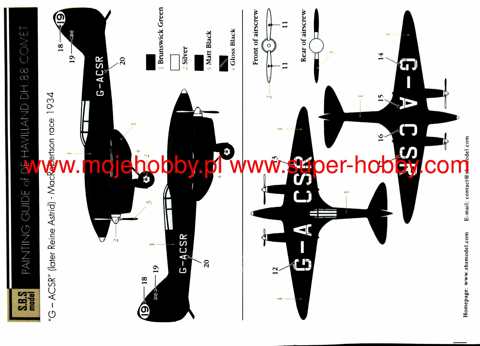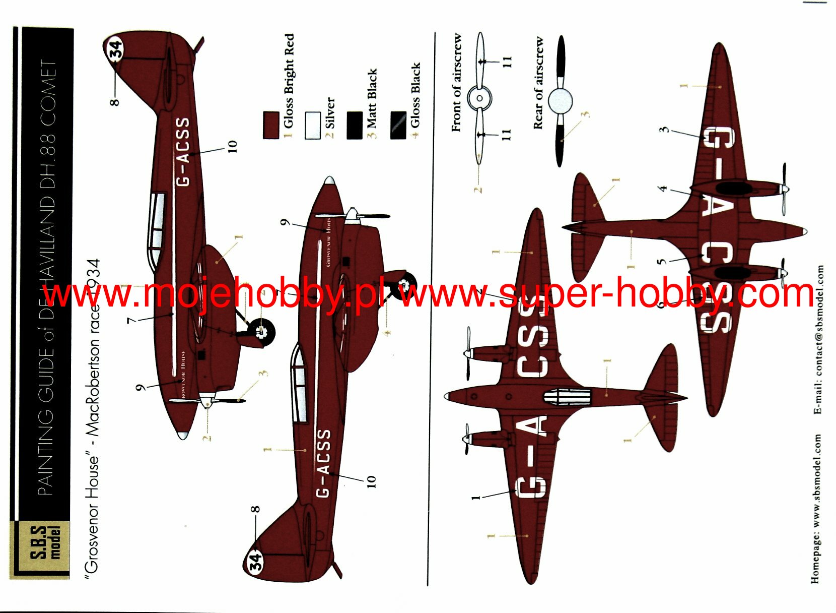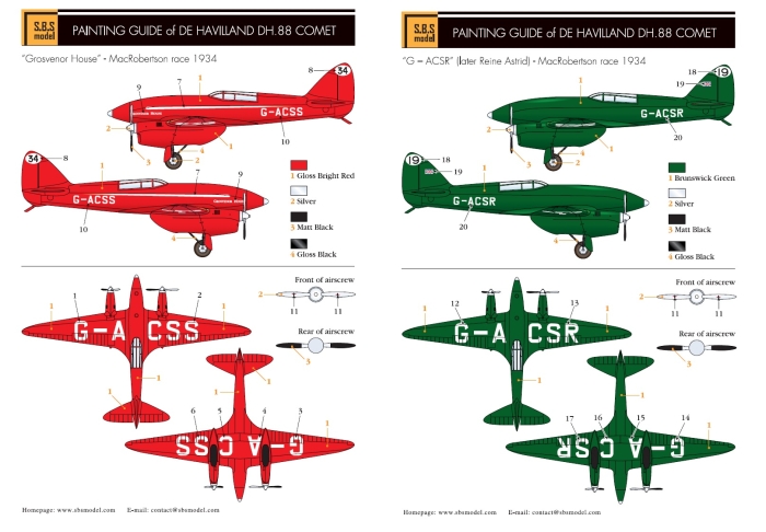 De Havilland DH.88 Comet był brytyjskim samolotem sportowym i wyścigowym z okresu międzywojennego w układzie dolnopłata. Napęd zapewniały dwa silniki de Havilland Gipsy-Six o mocy 230 KM każdy. Oblot prototypu miał miejsce w 1934 roku. W sumie, wraz z prototypami, powstało jedynie 5 egzemplarzy tego samolotu. De Havilland DH.88 Comet został opracowany specjalnie do wzięcia udziału w międzykontynentalnym wyścigu lotniczym z Wielkiej Brytanii do Australii o nazwie MacRobertson Air Race w 1934 roku. Pomimo stosunkowo krótkiego okresu prac badawczo-rozwojowych powstała bardzo ciekawa i udana maszyna, która cechowała się świetnym profilem aerodynamicznym, zamykaną kabiną pilota, chowanym podwoziem (co w owym czasie w samolotach sportowych nie było standardem!), jak również świetnym zasięgiem maksymalnym dochodzącym do 4800 kilometrów! W okresie 1934-1938 samoloty tego typu pobiły kilka międzynarodowych rekordów lotniczych. Do chwili obecnej zachowały się dwa egzemplarze DH.88 Comet. Co oprócz modelu będę potrzebować do jego sklejenia?