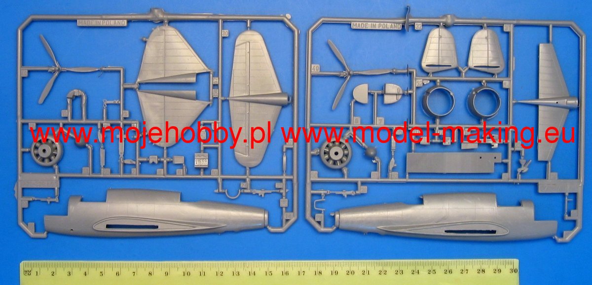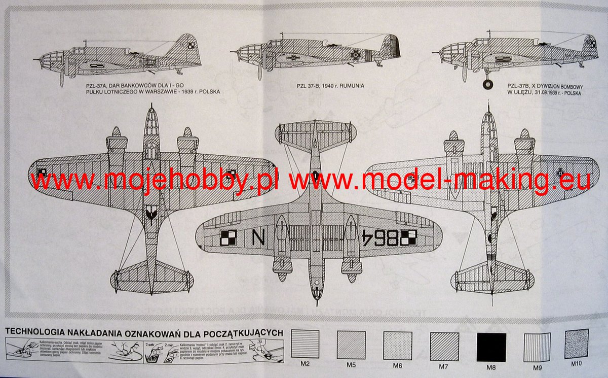 The PZL-37A / B Łoś is a Polish, two-engine low-wing bomber with a full metal structure, with a retractable landing gear. The flight of the prototype took place in December 1936, and serial production continued in 1937-1939. The PZL-37 was the most modern Polish military aircraft built before World War II and the world's first serial aircraft with a laminar wing profile. As a result, it developed a speed in excess of 400 km / h. The plane was among the world's top bombers at the end of the 1930s. By September 1939, 96 Elks had been built, 9 of which were crushed. 40 fought in the Bomb Brigade, while 37 were in the training squadron and in the Aviation Cadet School, and 5 in trials and 5 in repairs. The elk of the Bomb Brigade was fought by the German armored units near Radomsko, Pułtusk and Różan. 23 Łosie were evacuated to Romania, 2 landed in the USSR, 2 were captured by the Germans, and 60 were destroyed. The Romanian air force commandeered Łosie. Romanian characters and numbers from 201 to 220 were painted on them. They were used by Romania, which fought on the side of Germany with the Soviet Union, among others for the bombing of Odessa. Technical data (version B): length: 12.92 m, wingspan: 17.93 m, height: 4.25 m, maximum speed: 412 km / h, practical ceiling: 9250 m, maximum range: 1500 km, armament: fixed - 3 machine guns wz.37 7.92mm caliber, suspended - up to 2580 kg of bombs.
