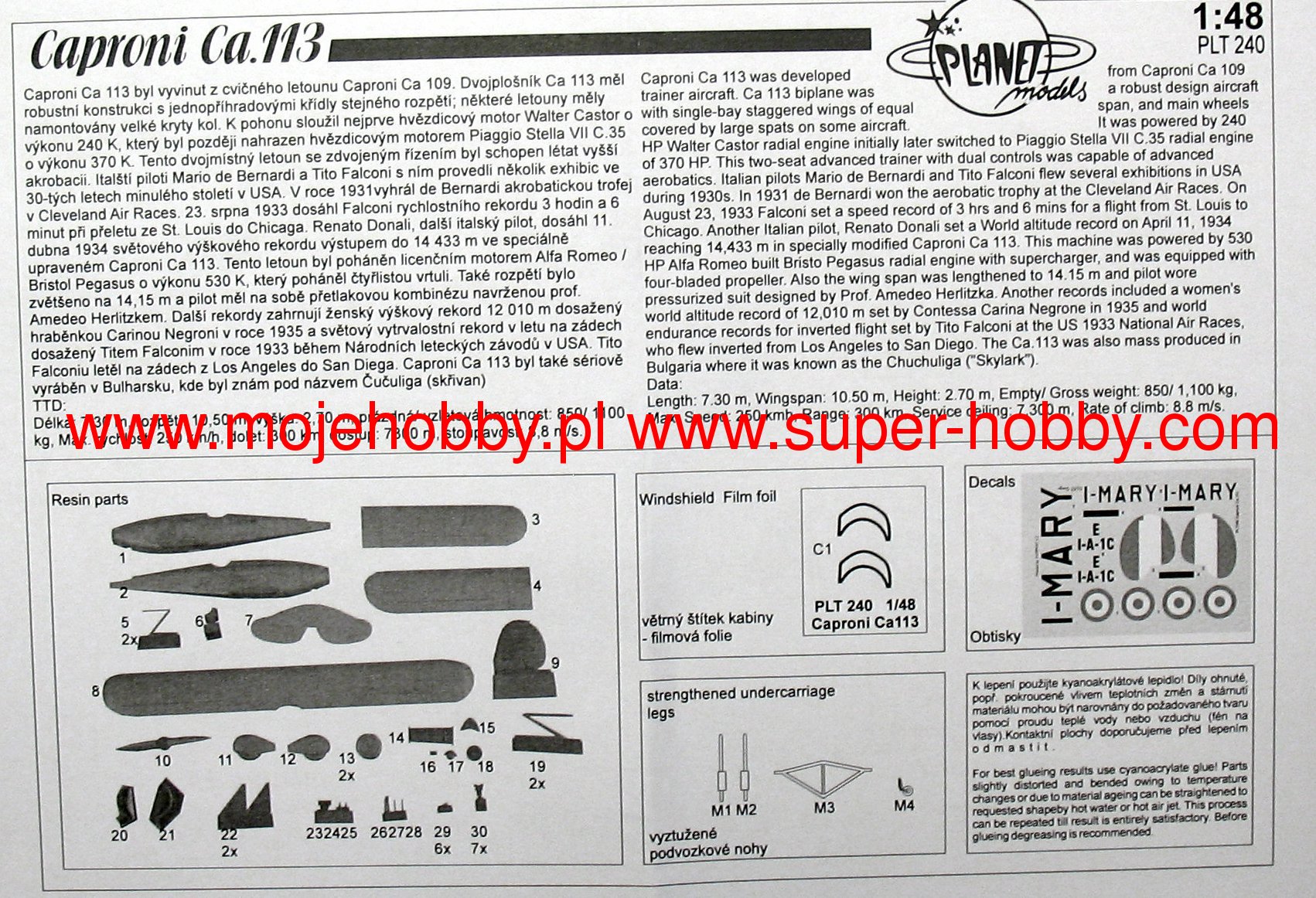 The Caproni Ca.113 was an Italian basic training aircraft in the biplane, fixed landing gear configuration. The drive was provided by a single engine Piaggio Stella VII C. with 370 hp. The prototype flight took place in 1931. The plane did not have permanent weapons. The Ca.113 was developed by the Caproni Aeronautica company as a successor to another aircraft from this company - the Ca.100. It differed from its predecessor by using a much more powerful engine, reinforced fuselage structure and such aerodynamic properties that allowed it to perform a full range of aerial acrobatics. The Caproni Ca.113 turned out to be a very successful machine, and the pilots flying it set many world records for this class of aircraft. An example is the altitude record (12,010 meters) established by the Italian pilot Carine Negrone in 1935. The Ca.113 planes were also licensed in Bulgaria and entered the service of the local air force.
