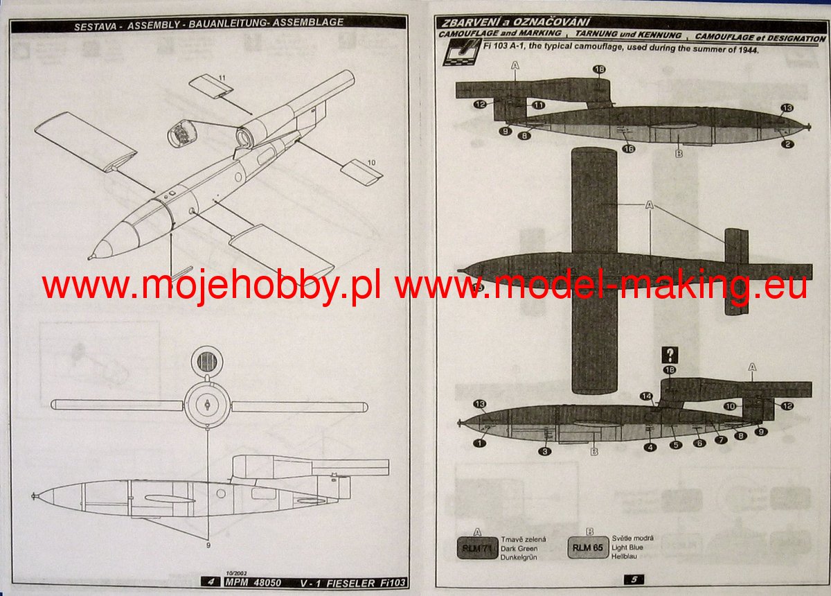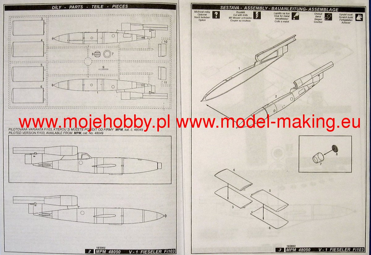 Załogowa wersja pocisku V1, Fieseler Fi 103R Reichenberg IV, majšca służyć do ataków samobójczych na samoloty aliantów i wybrane cele. Program lotów samobójczych planowano wdrożyć pod koniec wojny w 1945 roku. Oficjalnie niemieckie władze wojskowe używały okrelenia "taranowanie", jednakże możliwoci wydostania się pilota z rakiety były praktycznie żadne, z uwagi na dużš prędkoć oraz fakt iż osłona kabiny znajdowała się tuż pod wlotem silnika odrzutowego dodatkowo odchylajšc się jedynie o 45 stopni, co uniemożliwiało szybkie opuszczenie kabiny przez pilota i wylšdowanie na spadochronie. Ogółem przeszkolono 70 pilotów i wyprodukowano 175 maszyn Fieseler Fi 103R Reichenberg IV, nigdy jednak nie doszło do praktycznego ich zastosowania na polu walki. Sam pocisk Fieseler Fi 103R Reichenberg IV był niemalże identyczny jak japoński Yokosuka MXY7 Okha, używany przez japońskich pilotów-samobójców, z tš różnicš iż kabina japońskiego pilota była zarubowywana uniemożliwiajšc opuszczenie pocisku w trakcie lotu, natomiast kabina w niemieckim pocisku dawała teoretycznš szansę na ucieczkę, choć w praktyce niewykonalnš. Dane techniczne: Długoć: 8m, rozpiętoć skrzydeł: 5,72m, prędkoć maksymalna: 800 km/h, zasięg maksymalny: 330 km . Co oprócz modelu będę potrzebować do jego sklejenia?