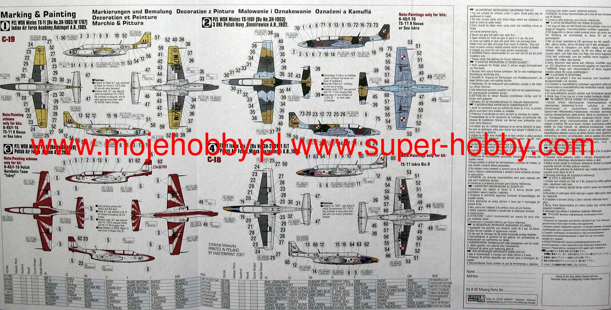 PZL TS-11 Iskra современный польский учебно-боевой самолет. Полет прототипа состоялся в 1960 году. Серийное производство продолжалось в 1963-1987 годах, завершившись выпуском 424 экземпляров этого самолета. Привод (с 1969 г.) обеспечивается одним двигателем. реактивный ВСК СО-3 . Максимальная скорость самолета составляет 720 км/ч, а максимальная дальность полета 1250 километров. Палубное вооружение одна 23-мм пушка НС-23 или НР-23. Наряду с широким внедрением реактивных самолетов в польскую авиацию возникла необходимость в создании адекватного учебного самолета. Заводы отвечали за его разработку и производство WSK "PZL Mielec", а его главным конструктором был Тадеуш Солтык. Новый самолет оказался удачной конструкцией с хорошими характеристиками, относительно низкой надежностью и низкими эксплуатационными расходами. В ходе серийного производства было создано множество вариантов этого самолета. Первой серийной версией стала Искра бис-А с двигателем СО-1. Вскоре после этого появилась версия Искра бис-Б, которая уже представляла собой учебно-боевой образец с возможностью установки подвесного вооружения. Также поступила на вооружение версия Искра Р, т. е. версия морской разведки, или Искра бис Д учебно-боевая версия. Также была создана гражданская версия без вооружения под названием Искра Джет. Военными пользователями самолетов ТС-11 Искра были Польша и Индия. В гражданской версии самолеты отправлялись в том числе в США или Великобританию.Примечание: Mistercraft часто меняет наклейки, поставляемые с моделями, без предварительного уведомления, и они могут отличаться от фотографий и описаний на нашем веб-сайте. Если вам нужна конкретная версия, сообщите нам об этом, введя соответствующий комментарий в поле для комментариев при размещении заказа.