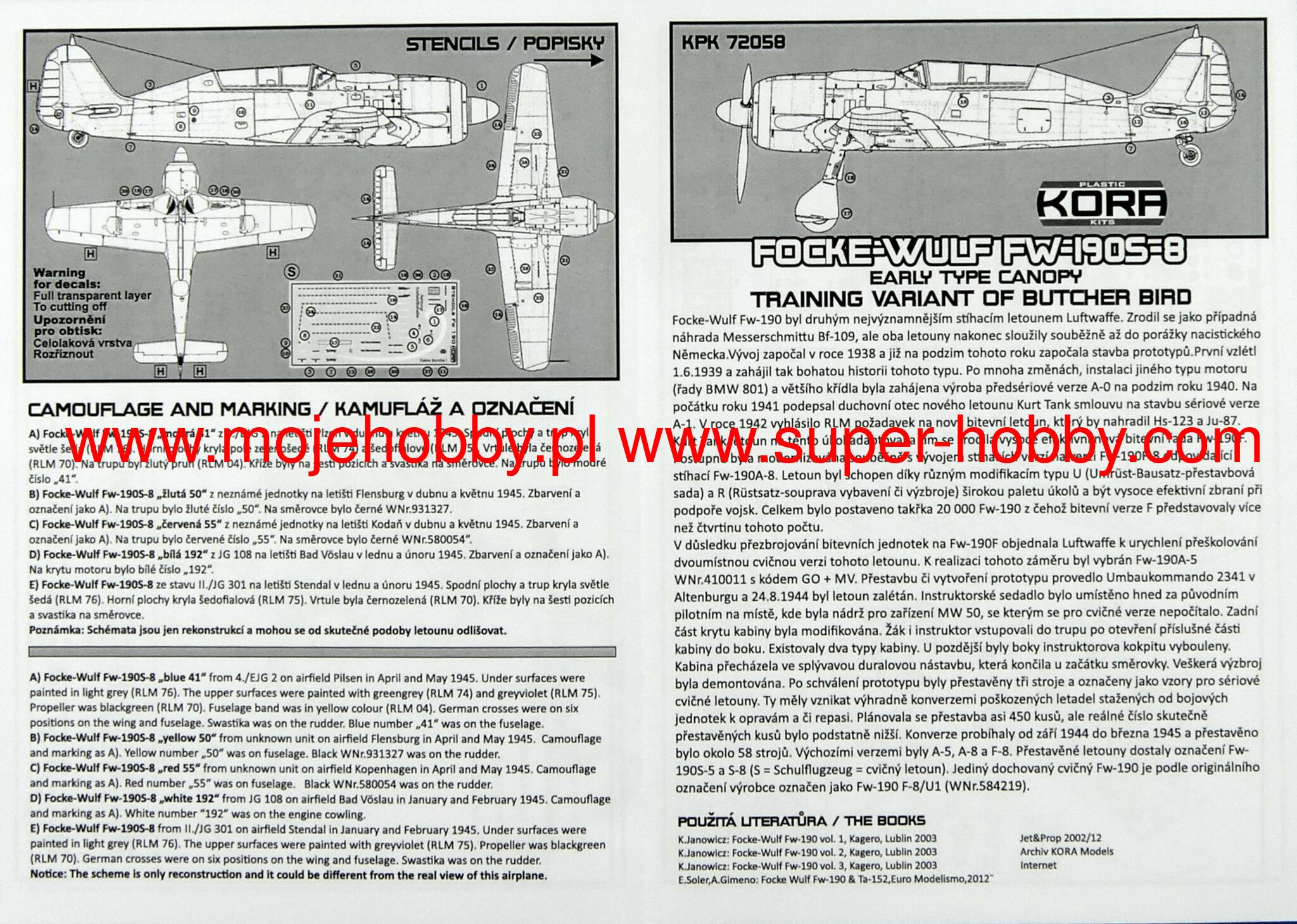 KPK7258 FOCKE-WULF FW-190S-8 GERMAN EARLY CANOPY TYPE kora models 1/72
