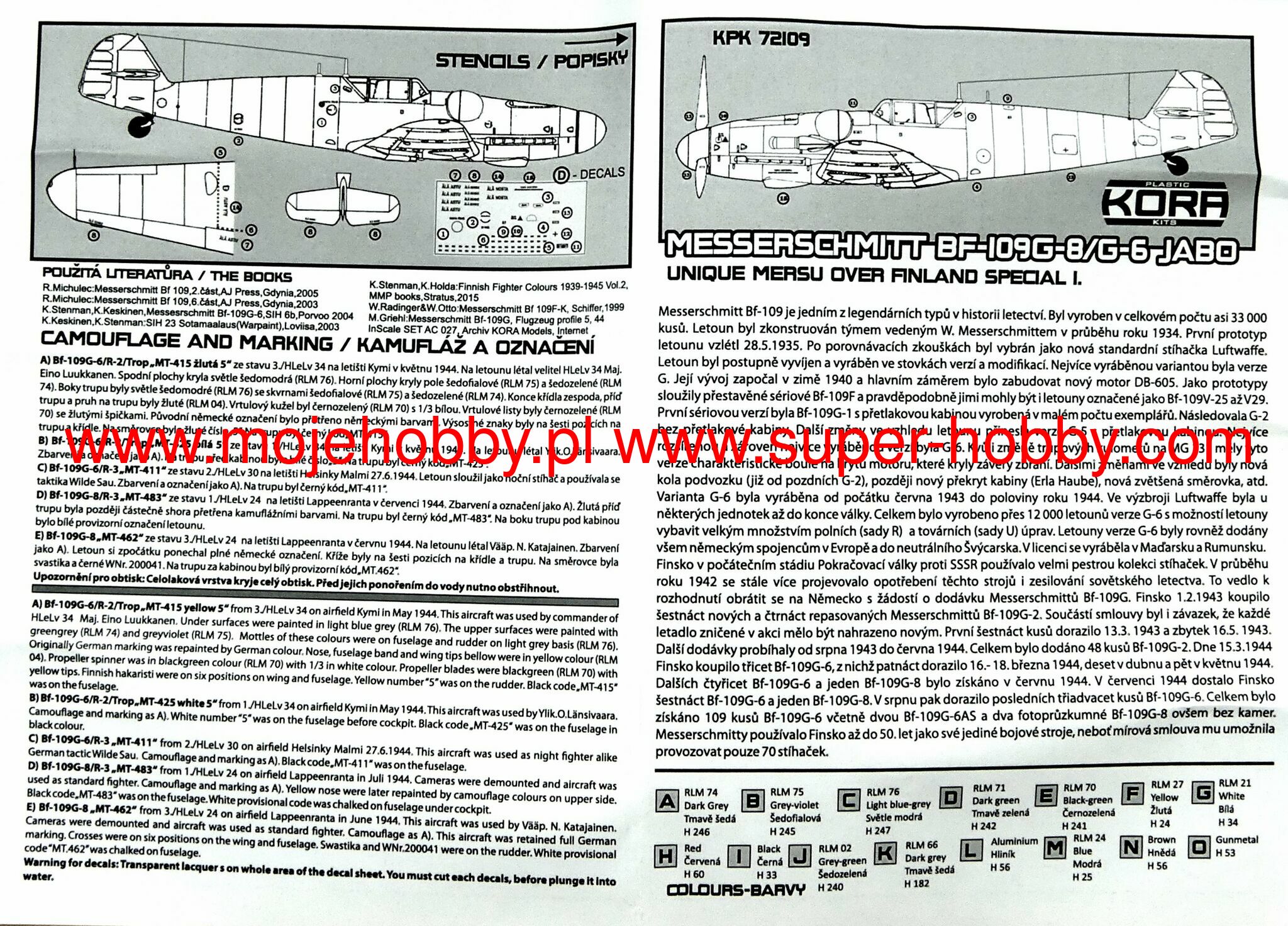 KPK72109 MESSERSCHMITT BF-109G-8/G-6 JABO FINNISH SERVICE kora models 1/72