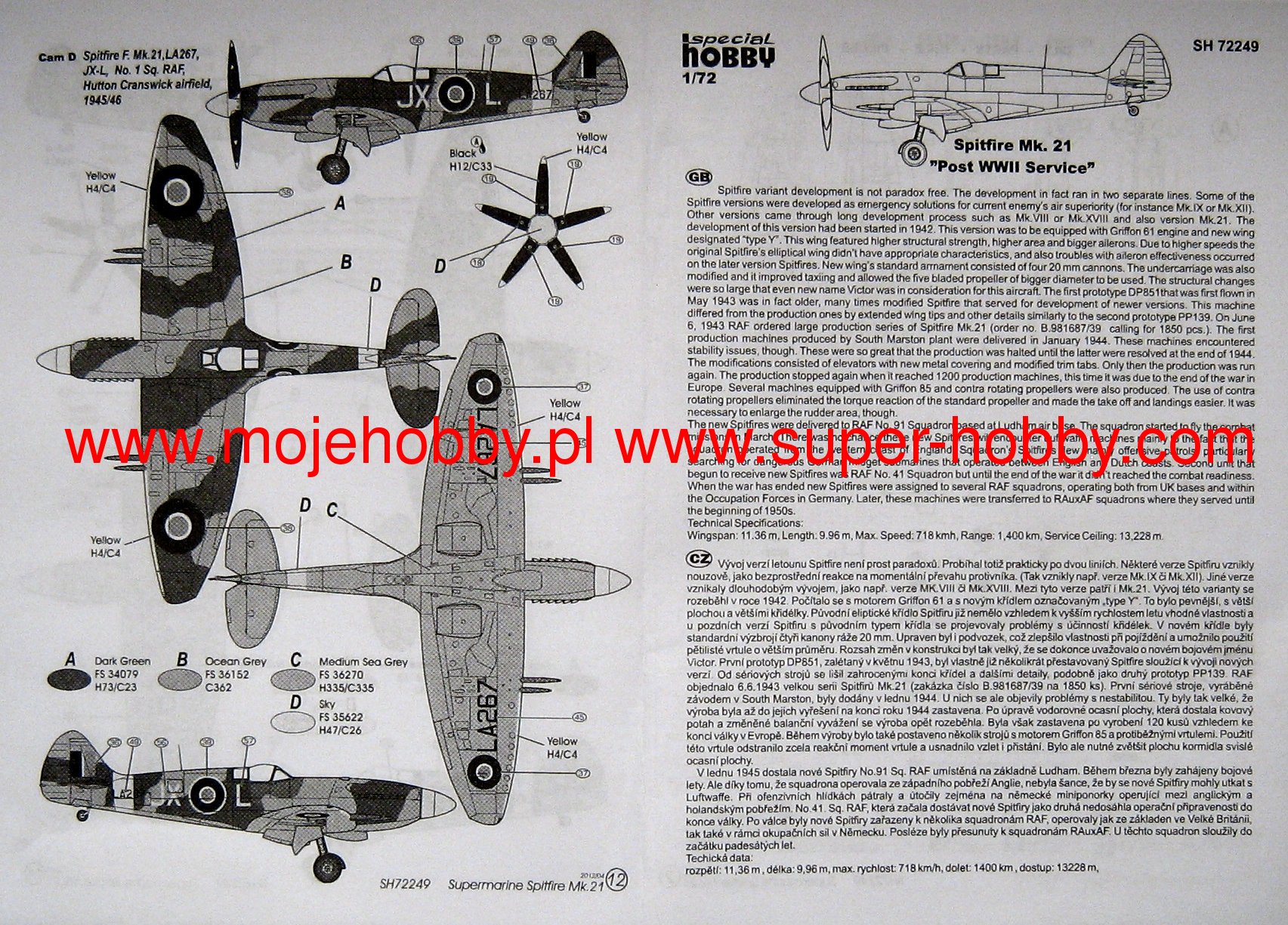 SPITFIRE F MK.21 POST WWII SERVICE special hobby 1/72