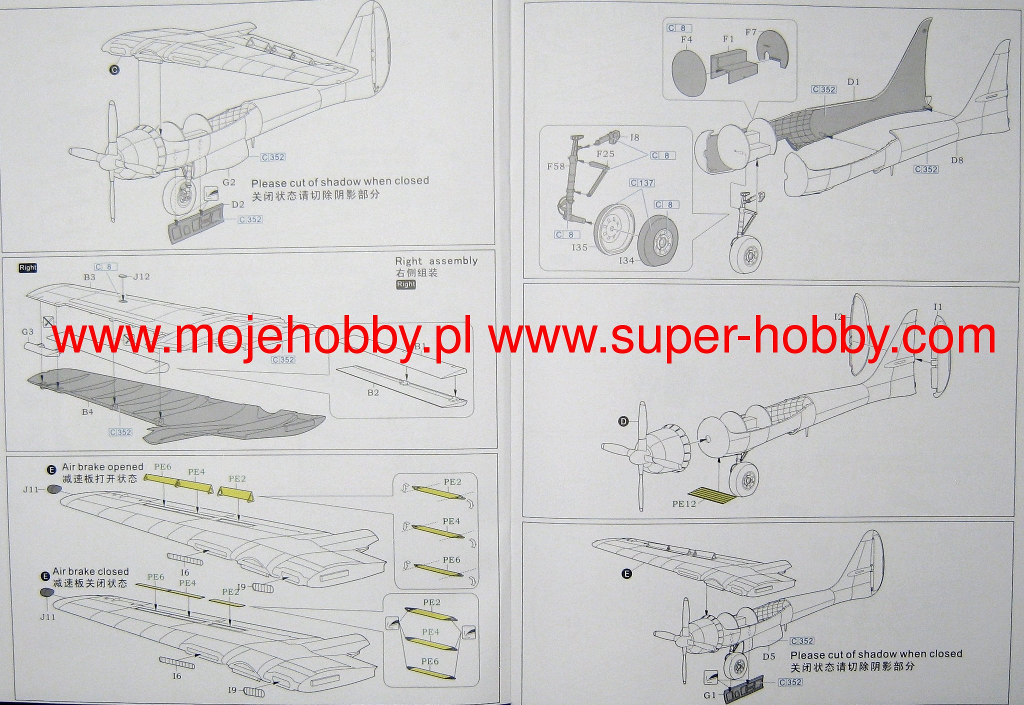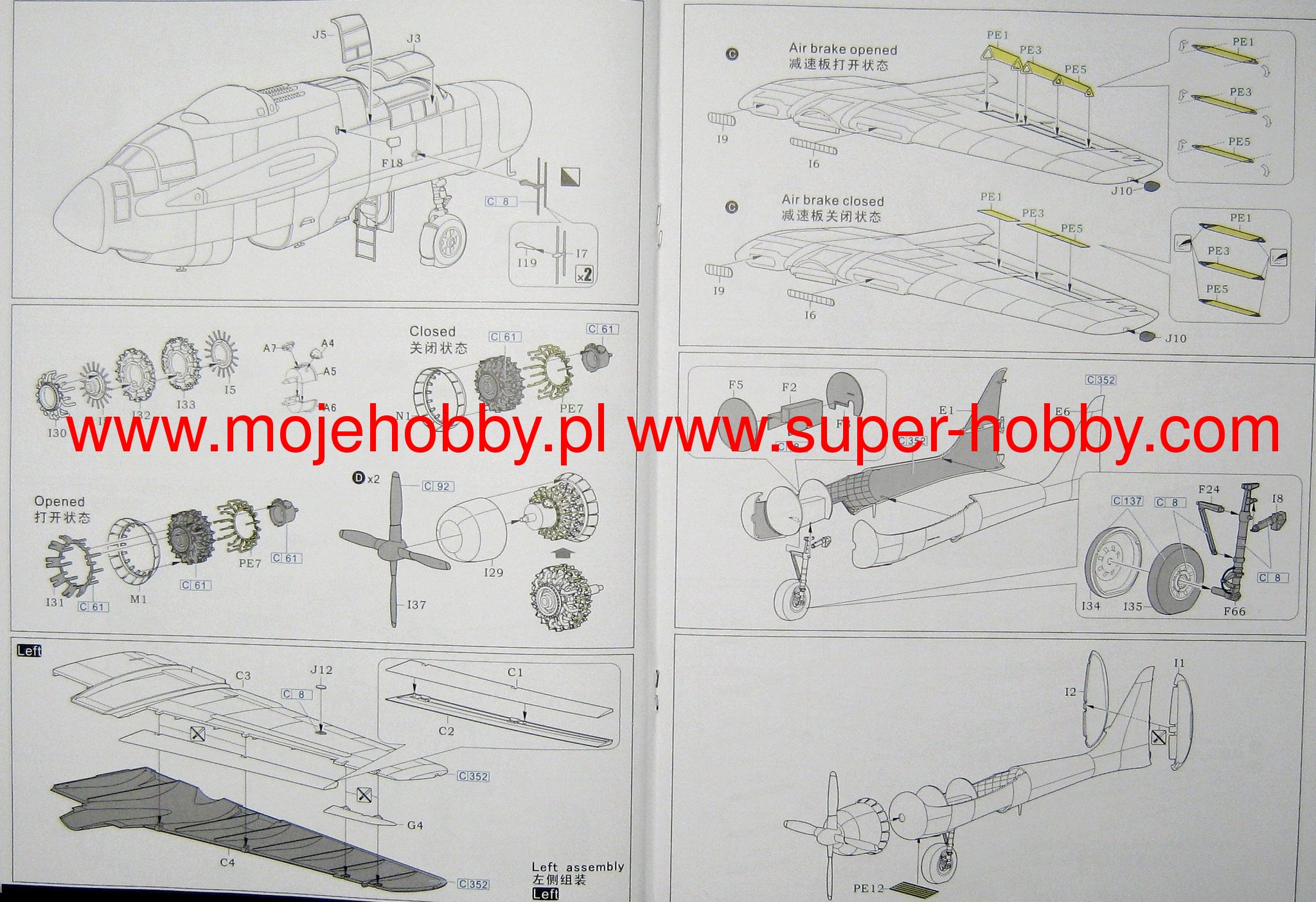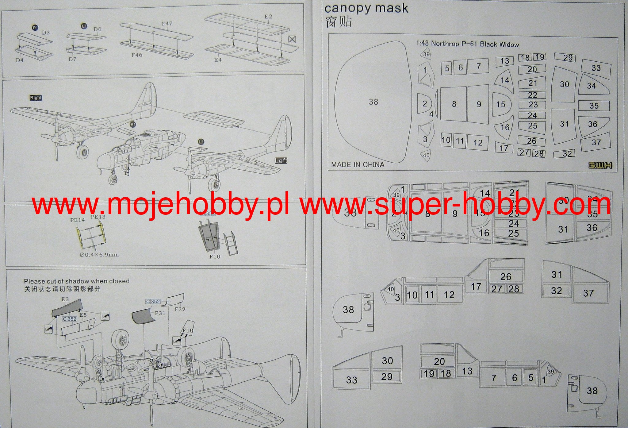 The Northrop P-61 was a three-seat, twin-engine night fighter, two-bar medium wing aircraft with retractable landing gear, adapted to operate from land bases. The prototype's flight took place in May 1942. The plane was made entirely of metal, initially of magnesium alloys, later of duralumin. The half-shell beam hulls were stiffened with metal frames. The crew cabin, located in the middle fuselage, housed a crew of three. The pilot sat in the front section, followed by the deck gunner, and finally the radar operator. In the turretless versions, the radar operator was moved to the gunner's cockpit, and there was an extra seat at the rear. The entire cabin was armored. The P-61 received an SCR-720 airborne radar with a range of 10 km, was located in the nose part of the fuselage, and was coupled to an IFF device for self-alien identification. The radar indications were received in the cockpit of the radar operator who sat at the rear of the fuselage. The armament consisted of four 12.7 mm machine guns mounted in a remotely controlled turret, which was not available on all versions of the aircraft, and four 20 mm cannons mounted in the fuselage. Each crew member had a sight, the pilot used it in typical fighter attacks, when the enemy's flight direction coincided with the flight of his own plane. In other cases, the fire was fired by a deck gunner, who was also a shooting tower operator. If it was necessary to defend against an attack from the rear, the duties of the shooter and the operation of the shooting turret were taken over by the radar operator. In addition, some machines, mainly operating in Europe, performed assault actions using bombs, unguided rockets or napalm tanks. Technical data: length: 15.11m, wingspan: 20.12m, height: 4.47m, maximum speed: 589km / h, climb speed: 112.9m / s, maximum range: 3060km, practical ceiling: 10600m, armament: Fixed - 4 12.7mm M2 machine guns and 4 20mm Hispano cannons, sling - for 2880 kg bombs or 6 127mm HVAR missile launchers.