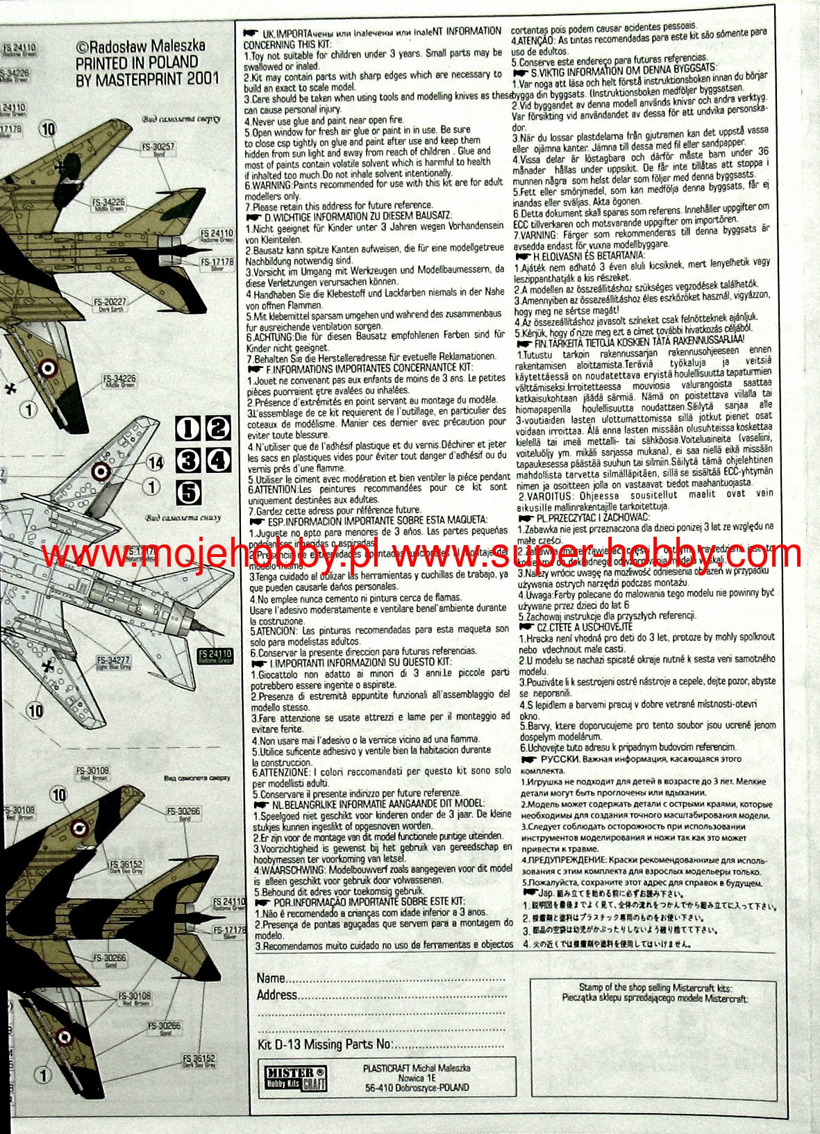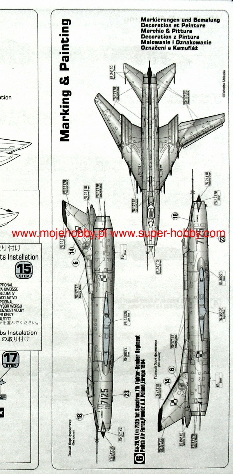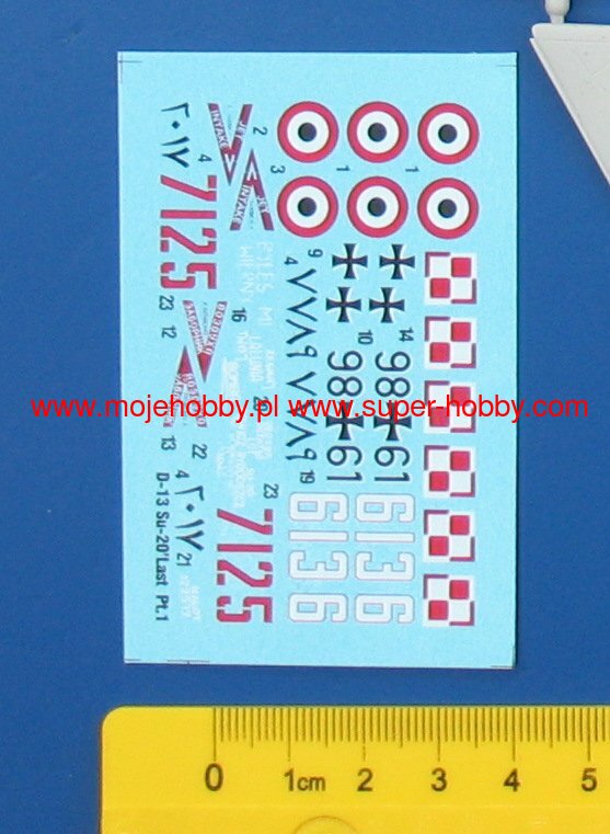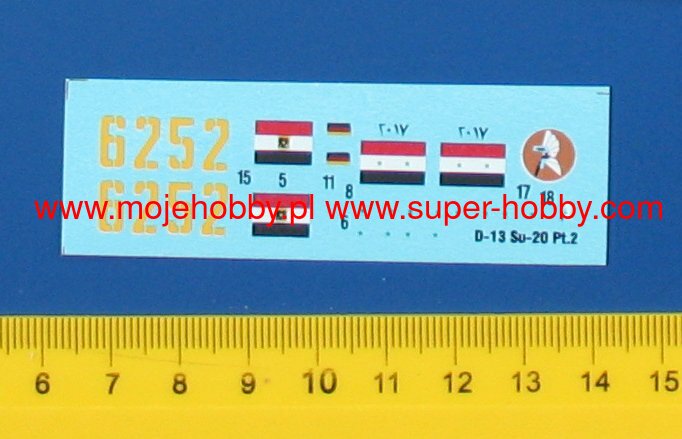 Су-20 советский истребитель-штурмовик с изменяемой геометрией крыла, экспортный вариант Су-17. Оба самолета (Су-17 и Су-20) были очень похожи друг на друга. Однако они различались используемым приводом на Су-20 применялся двигатель Лулька АЛ-21Ф. В СССР такая модернизация Су-17 получила обозначение Су-17М, который в качестве экспортного самолета обозначался как Су-20. Также был создан разведывательный вариант - Су-20Р. Эта машина была впервые продана в Польшу (с 1974 г.), где служила в составе 7-й бомбардировочно-разведывательной бригады в Повидзе. В ходе эксплуатации польская авиация адаптировала свои самолеты Су-20 для перевозки разведывательных контейнеров ККР. Технические данные: длина: 19,02м, размах крыла (со сложенными крыльями): 10,02м, высота: 5,1м, максимальная скорость: 1,7Ма, скороподъемность: 230м/с, максимальная дальность: 2250км, вооружение: стационарное - 2 НР-30 30-мм орудия, подвесные до 4070 кг груза.Примечание: Mistercraft часто меняет наклейки, поставляемые с моделями, без предварительного уведомления, и они могут отличаться от фотографий и описаний на нашем веб-сайте. Если вам нужна конкретная версия, сообщите нам об этом, введя соответствующий комментарий в поле для комментариев при размещении заказа.