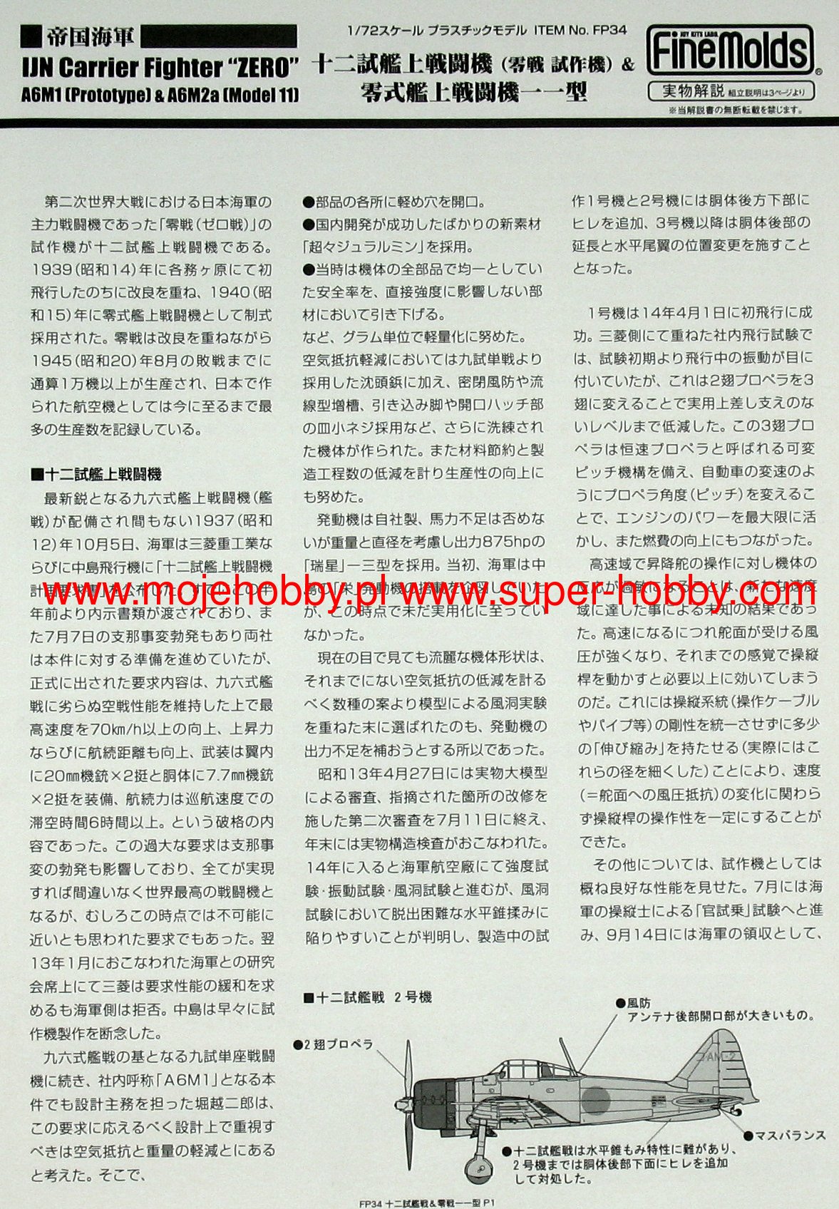 FP34 IJN CARRIER FIGHTER “ZERO” A6M1 (PROTOTYPE) & A6M2A (MODEL 11), (TWO KITS IN BOX)