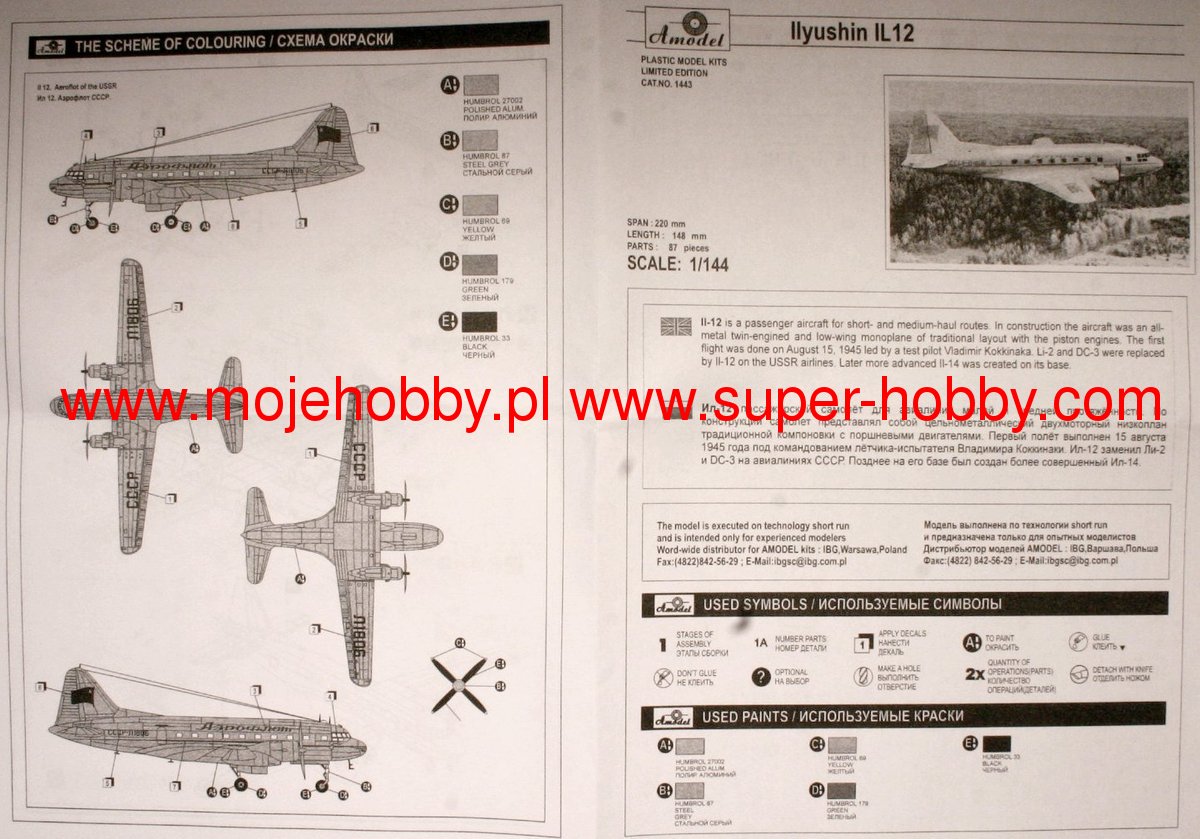 Ilyushin Il-12 (NATO code: Coach) was a Soviet, low-wing, twin-engine passenger and transport plane from the Cold War period. The drive was provided by two motors Szwecow ASz-82 FN, 1850 HP each. The flight of the prototype took place in 1945, and serial production continued in the years 1946-1950. In total, about 660 copies of this aircraft were built. Ilyushin Il-12 was developed to replace Li-2 aircraft in both military and civil aviation. Despite the fact that the machine entered serial production, it was underdeveloped and was characterized by high operating costs, a relatively small passenger cabin and emergency engines. In general, the plane was not very liked by its crews. In the course of serial production, three main development versions were created: Ił-12B (version with an enlarged passenger cabin), Ił-12T (a transport version capable of rising into the air with a load of 3.5 tons) and Ił-12D (version adapted to transport of paratroopers). Il-12 planes were used by countries such as Czechoslovakia, the PRC, Poland and the USSR.