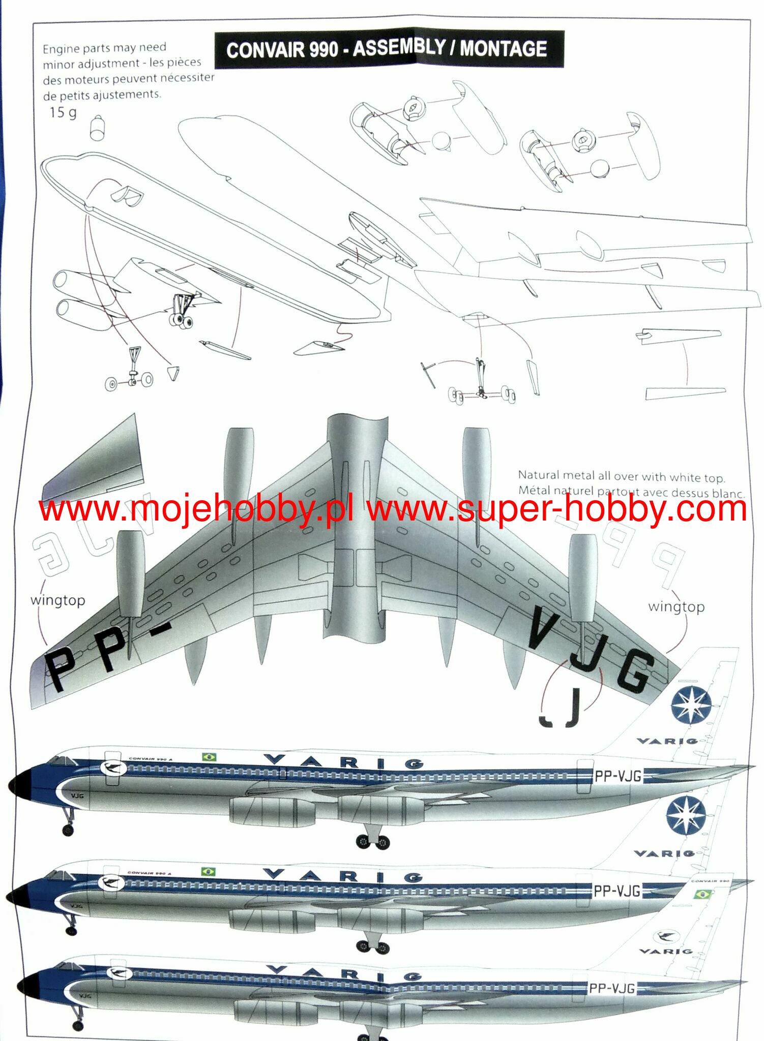 The Convair 990 Coronado was an American airliner that was first flown in 1961 and entered service a year later (1962). The machine, in the 990A version, was 42.6 meters long with a wingspan of 37 meters. The propulsion was provided by 4 General Electric CJ-805-23B turbojet engines with a thrust of 71.4 kN each. The maximum speed was 0.87 Ma. The machine was able to carry up to 149 passengers. In total, only 37 examples of this machine were built. The 990 model was developed by Convair shortly after the failure of the 880 model on the market. Initially, the main user of the aircraft was to be American Airlines, which sought to obtain the aircraft as fast as possible, with favorable operating economy and a range that would allow flights between the west and east coast of the USA without stopping . Convair's works on the new plane were based on the general assumptions of the 880 model, but they used new engines, the wing geometry was significantly changed, the fuselage was extended, and the aerodynamic properties of the whole structure were significantly improved. However, after the test flights, it turned out that Convair 990 would not meet the customer's expectations, which resulted in an increase in project costs and extension of research and development works. Although the 990 model was sold to such airlines as American Airlines or Swissair, the entire project turned out to be a spectacular financial failure of Convair.