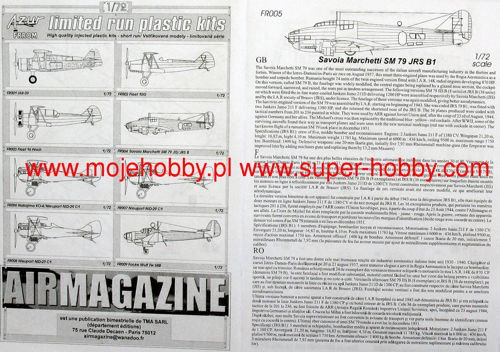 Savoia-Marchetti SM.79 Sparviero итальянский трехмоторный бомбардировщик и торпедоносец смешанной конструкции с низкорасположенным крылом времен Второй мировой войны. Полет опытного образца состоялся в октябре 1934 г., а поступление на вооружение в 1936 г. В ходе производства было изготовлено три основных варианта самолета. Первая модель SM.79 I, классический бомбардировщик с двигателями Alfa Romeo 125 RC.34. Второй - SM.79-II, выполняющий задачи торпедоносца, с новыми двигателями - Alfa Romeo 126. Третий вариант с SM.79 C, классический транспортный самолет. Кроме того, была создана и двухмоторная версия, предназначенная для экспорта в Бразилию, Ирак и Румынию. Savoia-Marchetti SM.79 впервые был использован в бою во время гражданской войны в Испании, где он показал себя очень хорошо с минимальными собственными потерями. В 1939-1943 годах самолеты этого типа воевали в Средиземном море, нанося удары по конвоям союзников, следовавшим с Мальты и на Мальту, воевали в Северной Африке и сражались с надводными частями. В период 1943-1945 годов самолеты использовались Итальянской Социалистической Республикой. После войны производство продолжилось как гражданский самолет. Технические данные (версия SM.79 III): длина: 16,2 м, размах крыла: 20,2 м, высота: 4,1 м, максимальная скорость: 460 км/ч, скорость набора высоты: 5,3 м/с, практический потолок: 7500 м, максимальная дальность: 2600 км, вооружение: стационарное 2 7,7-мм пулемета, 1 12,7-мм пулемет Breda-SAFAT и 1 20-мм пушка, подвесное до 1200 кг бомб или 2 450-мм торпеды.
