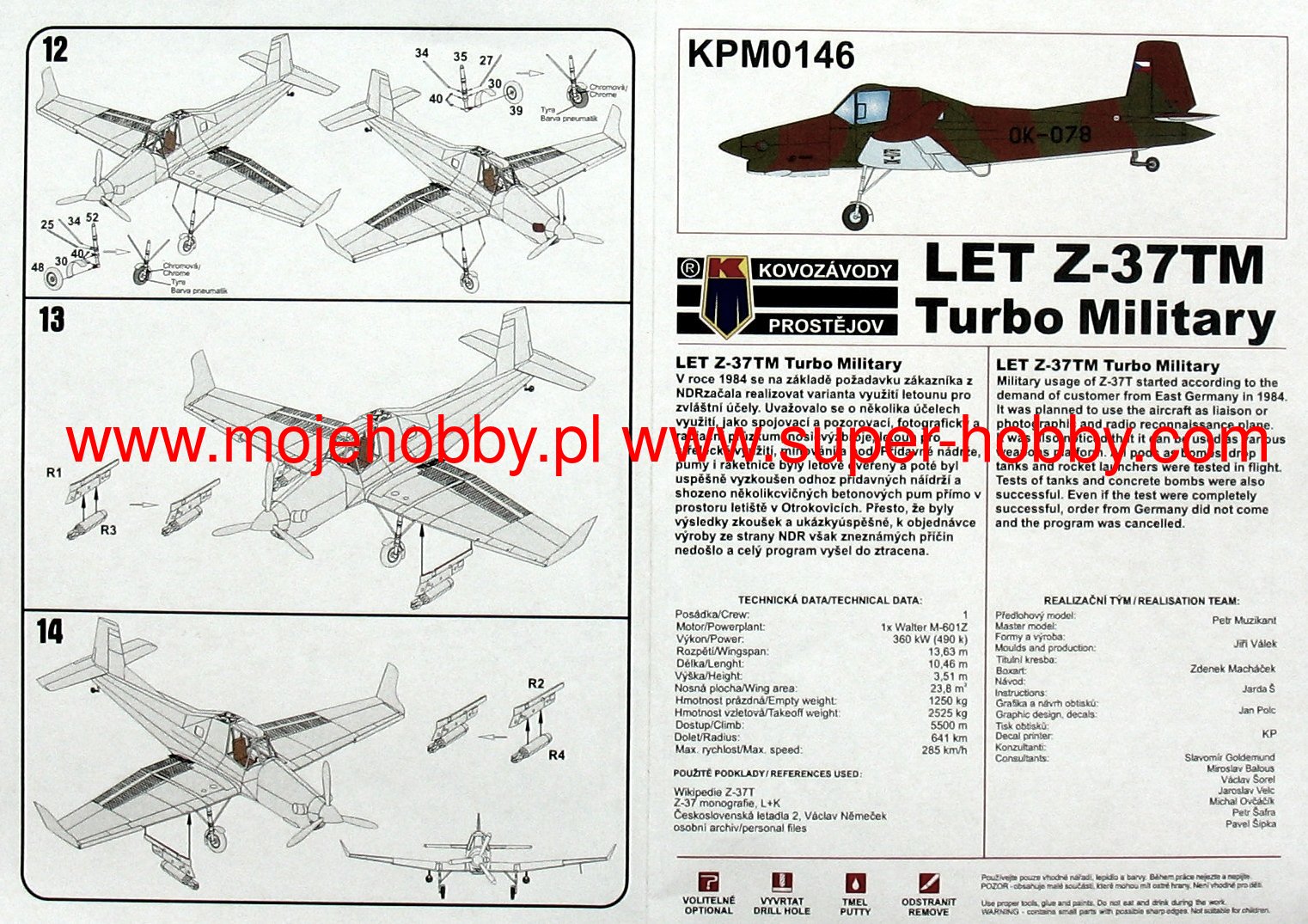 The Zlin Z-37 Cmelak was a Czechoslovak agricultural and communication plane. The prototype flight took place in 1963. Serial production was carried out in the years 1965-1987. About 700 aircraft of this type were built in its course. The drive - in the Z-37A version - was provided by a single Avia M462RF engine with a capacity of 315 HP. The length of the aircraft was 8.55 meters with a wingspan of 12.22 meters. The Zlin Z-37 Cmelak was created as a result of works initiated in 1961 between the Zlin and Avia plants. After a relatively short period of research and development, a machine was created in the low wing system with a classic undercarriage, with a relatively simple structure and not high production costs. In 1971, a version of the Z-37A with a reinforced structure entered production. A training version was also created (designation: Z-37A-2). In 1985, however, a version of the Z-37T with a new power unit entered production. The Z-37 planes in various versions were exported to many countries of the Eastern Bloc, but also to Third World countries. They turned out to be successful machines and remain in service to this day.