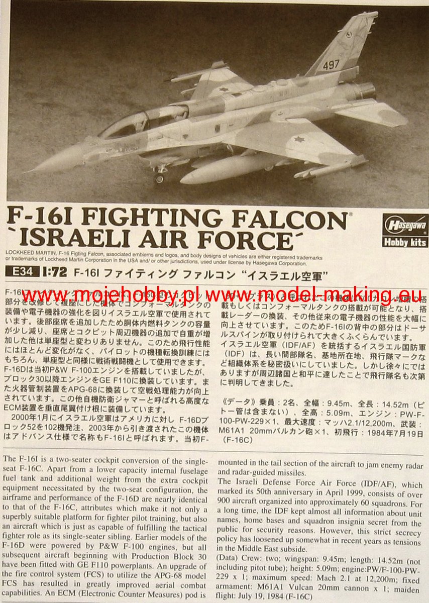 GENERAL-DYNAMICS F-16I FIGHTING FALCON (ISRAELI AIR FORCE) hasegawa 1/72