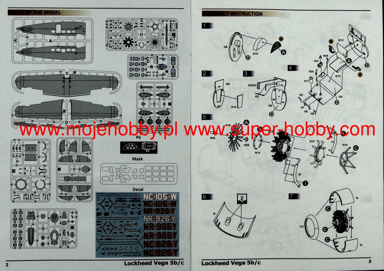 The Lockheed Vega was a single-engine, American high-wing, wooden structure with a fixed landing gear. The drive - in the Vega 5 version - was provided by a single Pratt and Whitney Wasp radial engine with 450 HP. A prototype flight took place in 1927, and serial production began shortly after. About 120 aircraft of this type were built in its course! Lockheed Vega was created as a grassroots initiative of this label, and its designers were John Northrop and Gerald Vultee, who later founded their own aviation companies. The new machine was characterized by refined, for those times, aerodynamics and a very high maximum speed for an aircraft of this class. It was also able to carry 4 to 6 passengers. Several development versions of this aircraft were created in the course of production, for example: Vega 1 (the first production version, powered by the Wright Whirlwind engine), Vega 5 (version powered by the Wasp engine) or Vega 5 A (transport version). The plane of this type was also used by GH Wilkins to fly to the Arctic in 1928The Lockheed DL-1 / Y1C Vega is an American, single-engine, mixed-structure, metal-lined passenger plane with umbrella wings. The flight of the prototype took place in 1927, and shortly thereafter, serial production was started at Lockheed's plant in Los Angeles, which ended with the production of 128 copies. In 1930, the DL-1 was sent to the USAAC for testing. The plane became famous thanks to the Wilkins' flight over the Arctic from Alaska to Spitsbergen on April 22, 1928. Technical data: length: 8.38 m, wingspan: 12.5 m, height: 2.59 m, maximum speed: 298 km / h, maximum range: 885 km , maximum ceiling 5485m.