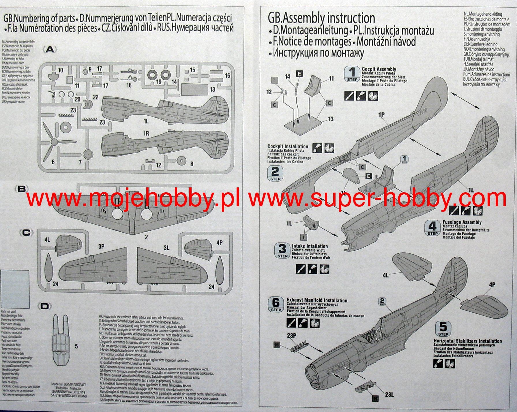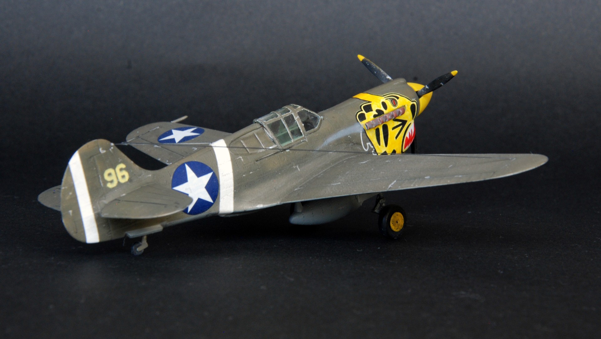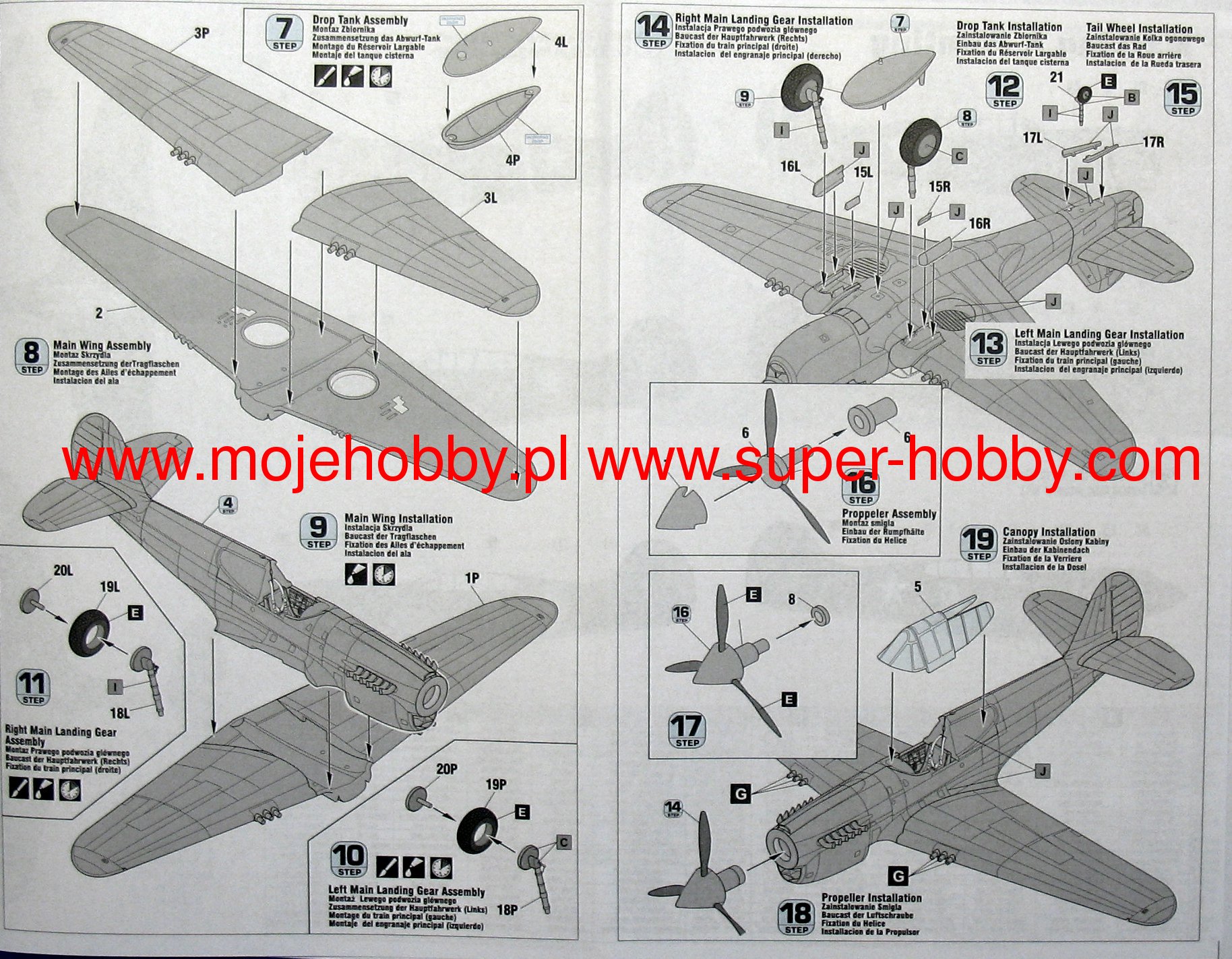 Note: Comany Mistercraft frequently changes, without any notice, the decals that come with the model, so they may differ from the photos and descriptions on our website. If you need a specific version, please let us know about that by entering the appropriate notice in the comments field when placing the order. The Curtiss P-40 Warhawk is an American, single-engine, metal fighter-attack aircraft in a low wing configuration with a classic tail. The flight of the prototype took place in 1938, and serial production was carried out in the years 1938-1944. The last of the Hawk family of planes - the Curtiss P-40 Warhawk was, apart from the Republic P-47 and the North American P-51 Mustang, the most widely built American fighter. At the end of production in December 1944, the number of machines exceeded 15,000. The development of the design began in 1937, when the prototype airframe of version 75 was adapted to the installation of the 1167HP Allison V-1710-11 in-line engine. The plane became the first American construction capable of flying at speeds over 483 km / h. The version for the RAF was called the Tomahawk Mk IIA. The planes had self-sealing fuel tanks and two wing-mounted 7.7mm machine guns. The Tomahawk MkIIB were equipped with American radio hardware and armed with six 7.7mm machine guns. Some American P-40s were modernized in 1941 for reconnaissance tasks. They received the designation RP-40. Meanwhile, work on the Hawk 81-A was underway at the Curtiss facility. The changes included the installation of the Allison V-1710-39 engine with a capacity of 1167KM, providing constant power up to a height of 3563 meters, adaptation for installation in the wing of four 12.7mm machine guns and the installation of a fuselage node that could carry one bomb weighing 227 kg or thrown back additional fuel tank. The US Army placed an order for these machines in September 1940, awarding them the designation P-40D. Over the next three years, Curtiss made every effort to expand the application possibilities of the P-40, creating numerous new versions of the aircraft. Despite these efforts, Warhawk's performance was lower than that of contemporary Allied and Axis fighters. Technical data (P-40E version): length: 9.66m, wingspan: 11.38m, height: 3.76m, maximum speed: 580km / h, rate of climb: 11m / s, maximum range: 1100km, practical ceiling: 8800m, armament: fixed - 6 M2 machine guns, caliber 12.7 mm, suspended - up to 900 kg of cargo.