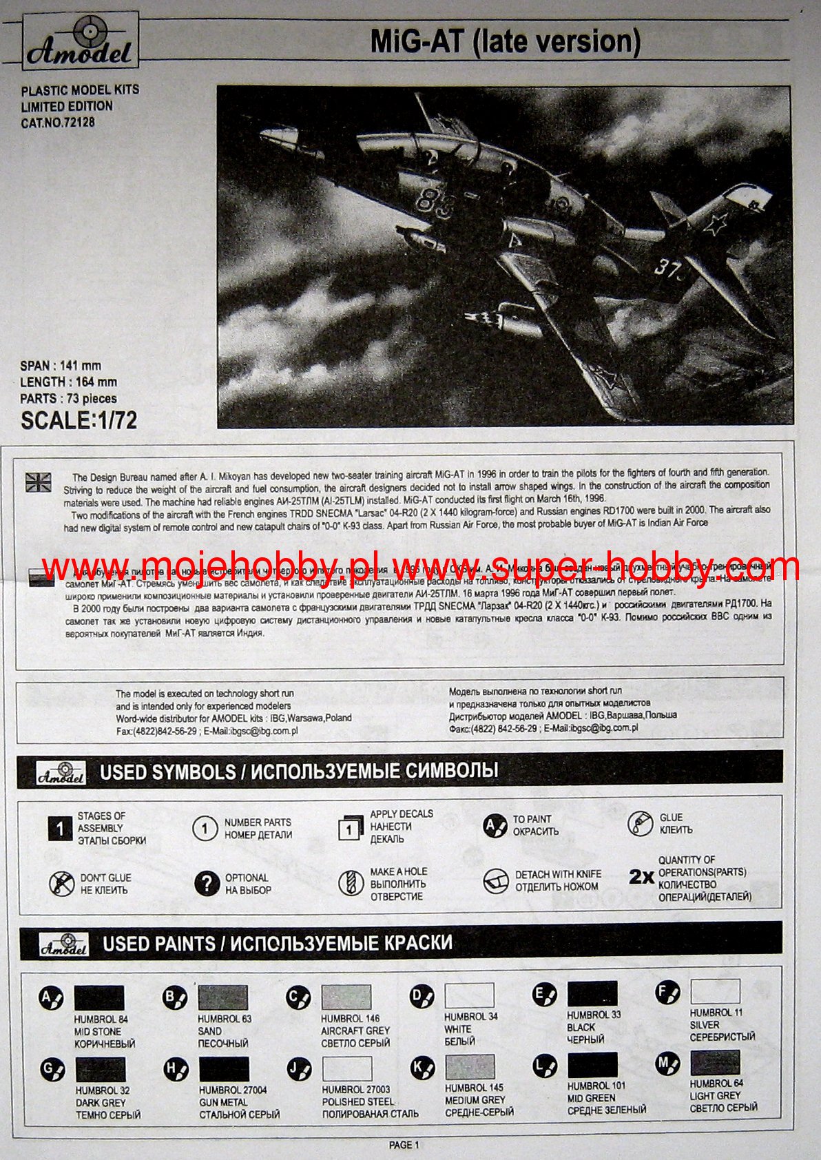 MiG-AT is a modern, Russian prototype training and training aircraft. The prototype flight took place in 1996. The machine is powered by two SNECMA Turbomeca Larzac O4R20 jet engines. The length of the aircraft was 12.01 meters with a wingspan of 10.16 meters. It was possible to install a container with a 23 mm cannon and to carry other suspended weapons weighing up to 2,000 kg. The MiG-AT was commissioned by the Russian air force, which wanted to obtain an advanced training machine that could replace such planes as the Aero L-29 or L-39 in the line. In order to reduce costs and speed up the design work, it was decided to use the most conventional aerodynamic system and to invite French companies to cooperate, which would primarily provide appropriate aircraft engines. At the same time, however, very modern - as for the 1990s and Russian standards of that time - electronic devices were introduced in the plane. Despite good results in test flights, the MiG-AT lost the fight for Russian aviation orders with the Yak-130 aircraft.