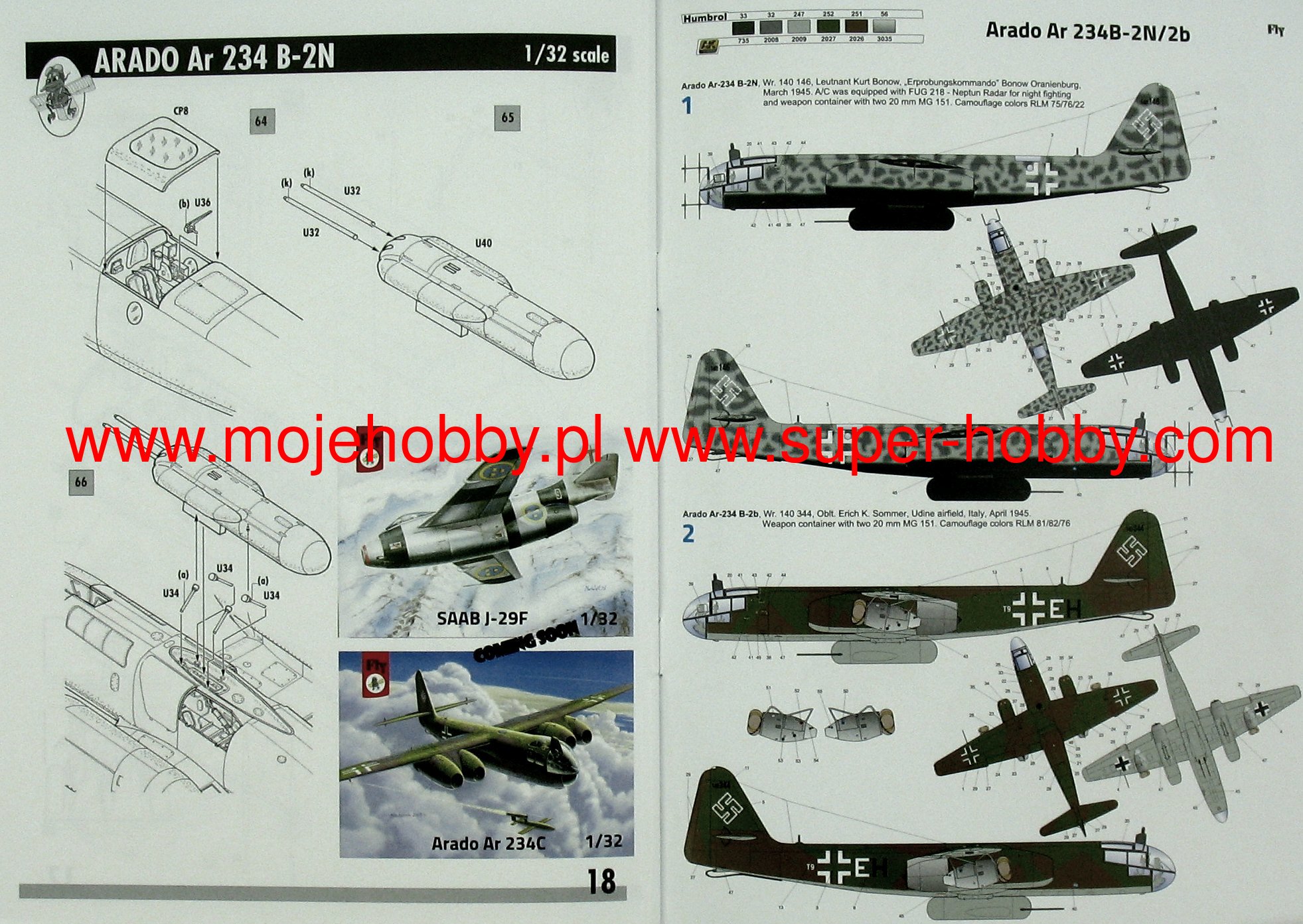 Arado Ar 234 "Blitz" (German: lightning) is a German twin-engine reconnaissance bomber with turbojet drive. One of the most pioneering aviation structures of the end of World War II. At the beginning of the war, the Luftwaffe did not give priority to the creation of jet machines, this changed in 1941 when Erhard Milch became its Inspector General. The first prototypes in the reconnaissance version (Ar 234 V-1) were flown in the summer of 1943, and in the bomber version (Ar 234 V-9) in March 1944. Mass production started in the same year, and by the end of the war, 238 units were produced. The drive of the serial versions was the Jumo 004 B-1 engine. Several versions of the aircraft were produced, including the B-2 / N version was equipped with a radar and used to locate and intercept Allied bombers during night raids. The Ar-234 aircraft was one of the most technologically advanced Luftwaffe machines at the end of the war. The Jumo 004 B-1 engines and the great RF2C periscope sights deserve special attention. Thanks to its fantastic performance and considerable maneuverability, the AR 234 was extremely difficult to knock down for all Allied machines. After 1945, the captured single copies were subjected to intensive testing by all the victorious powers. At the same time, the Ar 234 "surpassed" the Luftwaffe command, which was not able to fully discount its value and combat advantages. Technical data: Top speed: 740 km / h; rate of climb: 12.7 m / s, maximum ceiling 10,000 m, maximum range: 800 km, armament: fixed - 2 MG151 / 20 20mm cannons, suspended - up to 1400 kg of bombs.