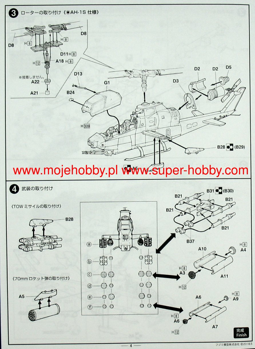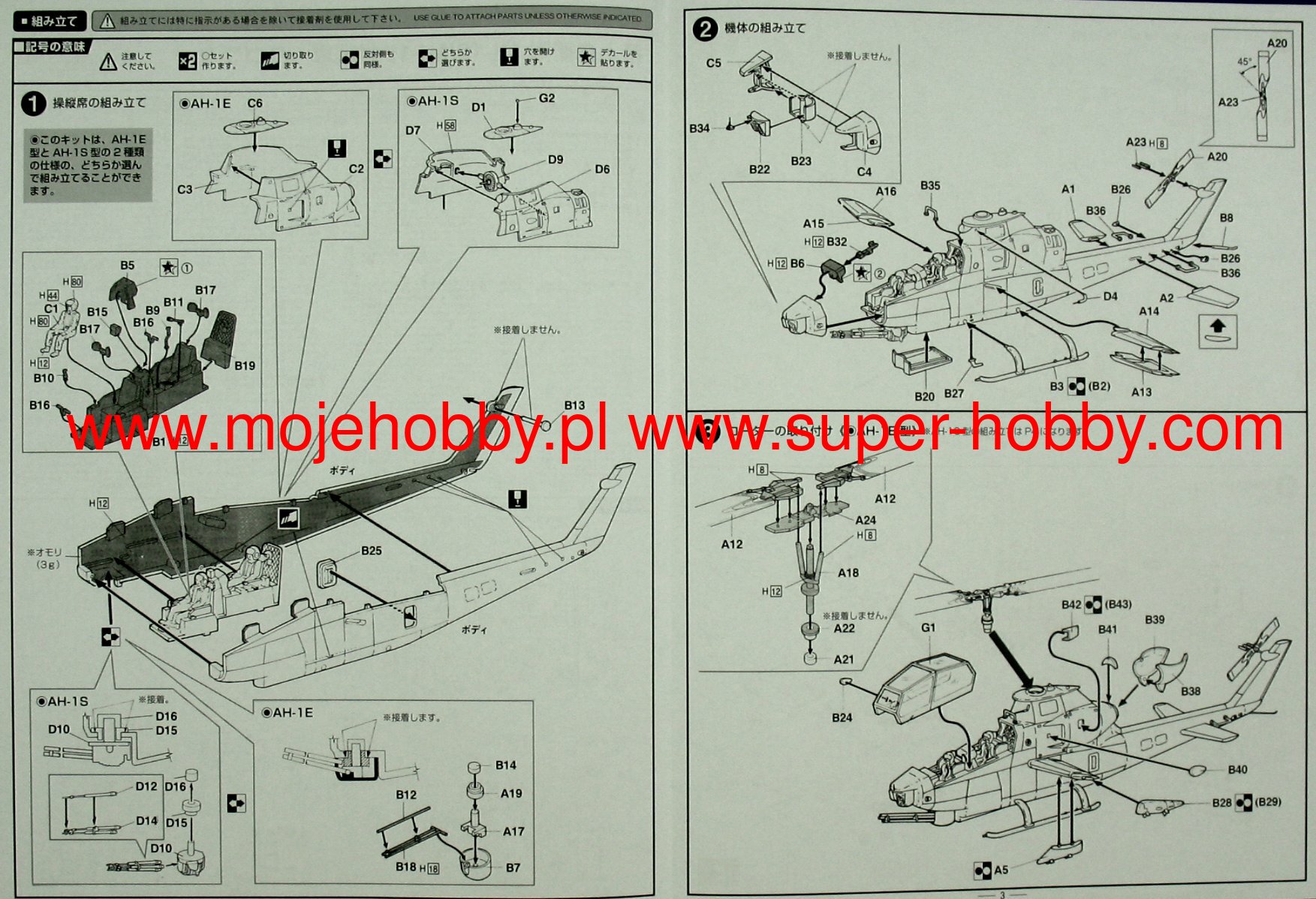 Helikopter AH-1 Cobra (Bell 209) to migłowiec szturmowy w układzie klasycznym, wykorzystujšcym bardzo wiele podzespołów swego starszego brata UH-1 Huey. Pierwszy lot prototypu AH-1 miał miejsce 7 wrzenia 1965 i w tym samym roku migłowiec wszedł do produkcji seryjnej. W czasie wojny wietnamskiej wyprodukowano 1126 maszyn modelu G, z których utracono w walce 279. Ze względu na bardzo wysokš niezawodnoć konstrukcji, niewielki profil boczny oraz dobre osišgi migłowiec pozostaje w służbie do dnia dzisiejszego w Korpusie Piechoty Morskiej Stanów Zjednoczonych. AH-1 pozwolił armii USA w pełni realizować teoretyczne założenie piechoty aeromobilnej (kawaleria powietrzna), poprzez wsparcie ogniowe lšdujšcych jednostek piechoty. W dniu dzisiejszym AH-1 Cobra jest wykorzystywany przede wszystkim przeciwko celon opancerzonym. Od 1965 powstało kilka wersji tego udanego migłowca min.: AH-1G (wersja podstawowa), AH-1J (wersja dwu-silnikowa), AH-1Q (wersja uzbrojona w rakiety TOW). Dane techniczne: Prędkoć maksymalna: 333 km/h; zasięg maksymalny (zależnie od wersji): 507-574km, uzbrojenie: stałe-1 działko trzylufowe M197 kal.20mm, podwieszane-rakiety, pociski kierowane pociski niekierowane i zasobniki z działkami. Co oprócz modelu będę potrzebować do jego sklejenia?