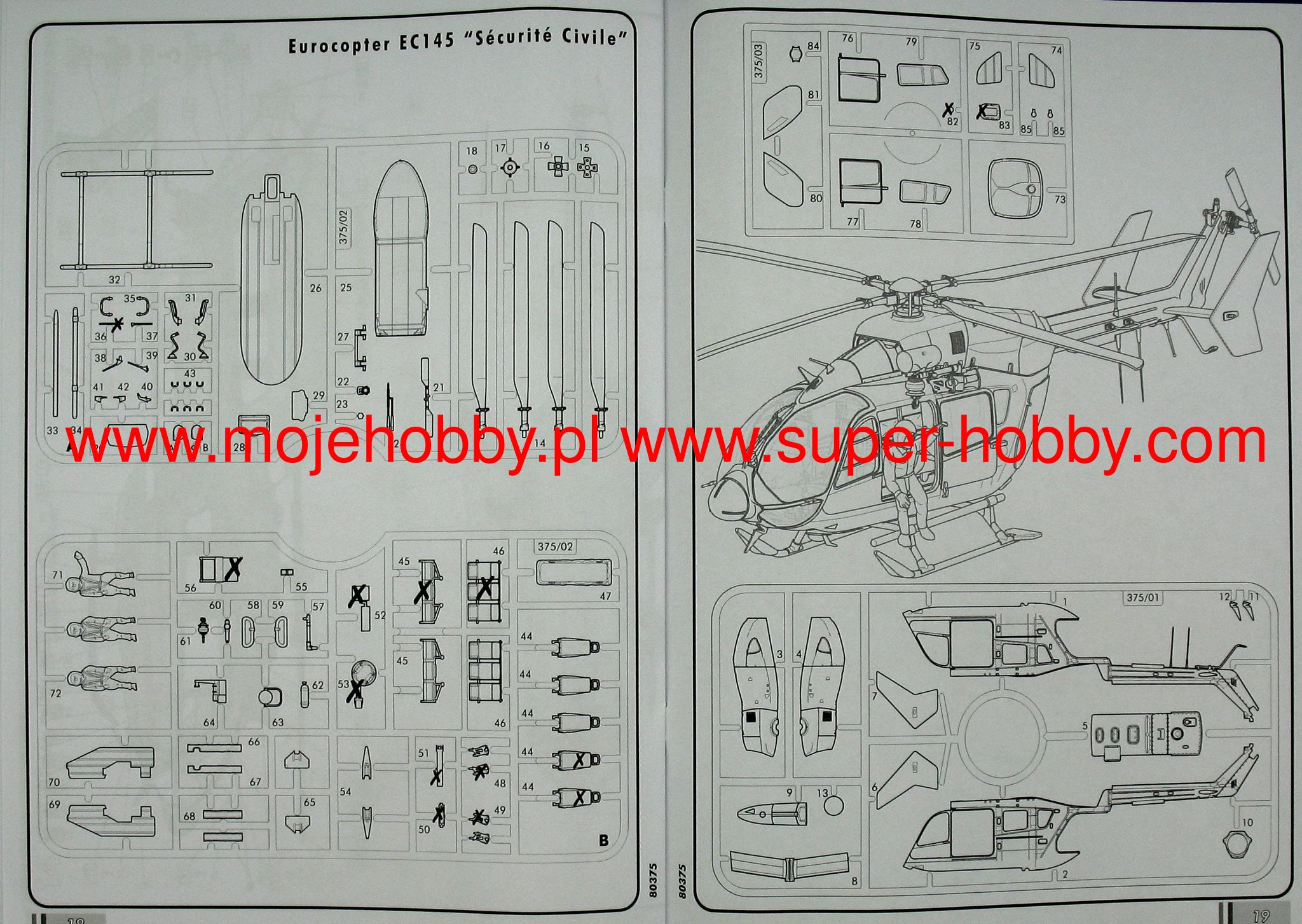 Eurocopter (obecnie: Airbus Helikopter) EC145 jest współczesnym, niemiecko-francuskim lekkim śmigłowcem wielozadaniowym, z podwoziem stałym-płozowym w układzie klasycznym z wirnikiem nośnym i śmigłem ogonowym na belce. Napęd zapewniają dwa silniki Turbomeca Arriel 1E2 o mocy 770 KM każdy. Oblot pierwszego prototypu miał miejsce w 1999 roku. Produkcja seryjna rozpoczęła się w 2002 roku i trwa nadal. EC145 był pierwotnie produkowany pod oznaczeniem BK117 C2 w kooperacji firm MBB oraz Kawasaki, jednak w chwili powstania grupy Eurocopter (z połączenia MBB oraz Aerospatiale-Matra) śmigłowiec przyjął obecną nazwę oraz uległ modernizacjom. W stosunku do swego poprzednika EC145 posiada nieznacznie powiększony kadłub, wykorzystuje nowy wirnik główny, posiada też znacznie bogatszą i bardziej rozwiniętą awionikę. Co ciekawe nie zdecydowano się na montaż śmigła ogonowego w układzie fenestronu. Zależnie od konfiguracji EC145 może zabrać na pokład do 9 pasażerów oraz 2 osoby załogi. EC145 jest wykorzystywany jako uniwersalna maszyna transportowa, maszyna dyspozycyjna, śmigłowiec ratownictwa medycznego czy służb mundurowych (np. policji). Eurocopter EC145 jest używany przez wielu operatorów zagranicznych, między innymi: Brazylię, Litwę, Maroko, Peru, Filipiny czy Szwajcarię. Co oprócz modelu będę potrzebować do jego sklejenia?