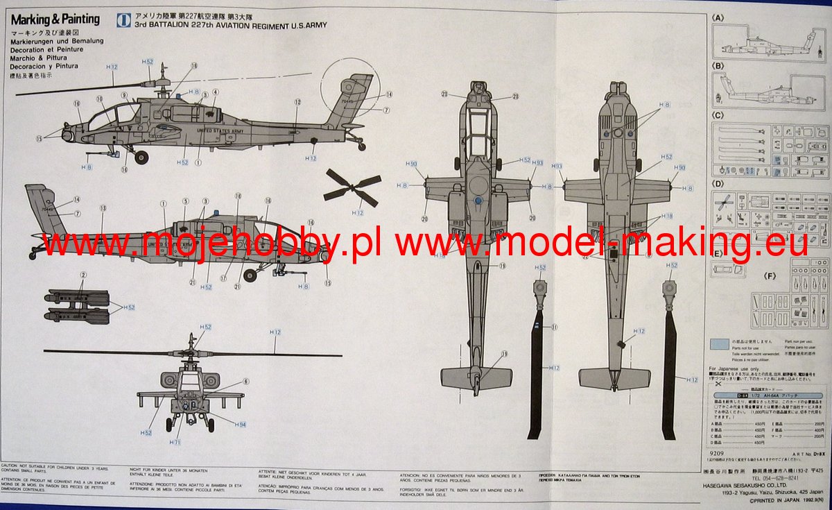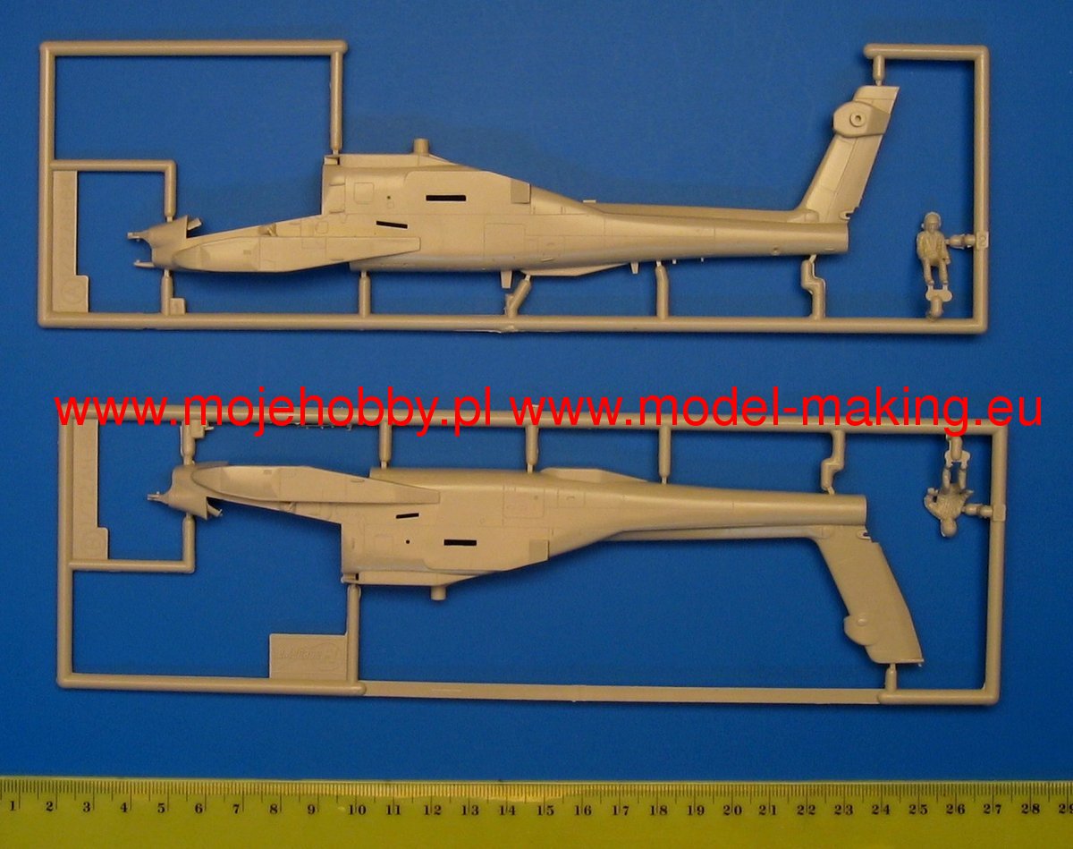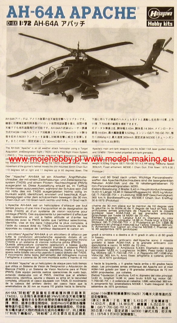 The McDonnell-Douglas (Boeing) AH-64 helicopter was selected as the winner in the competition with Bell's YAH-63 in December 1976. The name Apache stuck to the helicopter in 1981. This highly efficient machine has four-blade rotors driven by two General Electric T700-701 turbine engines with a capacity of 1696HP. The vestigial wings are fitted with conventional trailing edge flaps, and a plate tail improves longitudinal steering. The two-man crew takes seats one after the other in the armored cabin. The pilot's seat is in the rear, and the weapon operator / gunner is in the front. The key to the universal use of the helicopter are the TADS systems on the gunner's stand and the PNVS systems used by the pilot. The TADS is a target-tracking laser marker and rangefinder set and a forward-facing infrared sensor that is duplicated by the normal optics. The PNVS system is a developed FLIR system that allows you to pilot a helicopter just above the ground in order to prevent or delay detection by the enemy's anti-aircraft defense. Apache helicopters took part in the operation in Panama in 1989, during the Desert Storm in 1991, or the last conflict in Iraq (2003). At the end of 1990, the construction of a new version of the helicopter began, equipped with a Martin / Westinghouse Longbow millimeter radar installed above the head to control the weapons. It is used to control the Rockwell AGM-114 Hellfire anti-tank missiles. Technical data: Top speed: 300 km / h; climb speed 12.7 m / s, maximum range (without external tanks): 689 km, armament: 30mm Hughes M230A1 Chain Gun fixed-1 cannon, and outboard armaments - most often Hellfire missiles.
