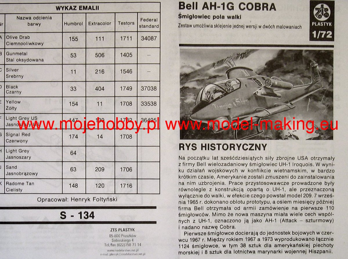 BELL AH-1G HUEY COBRA plastyk 1/72