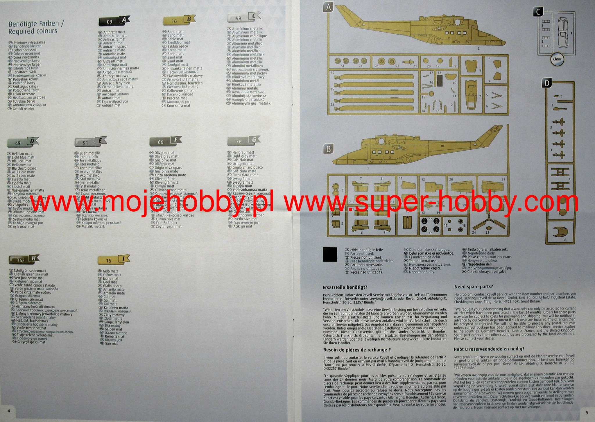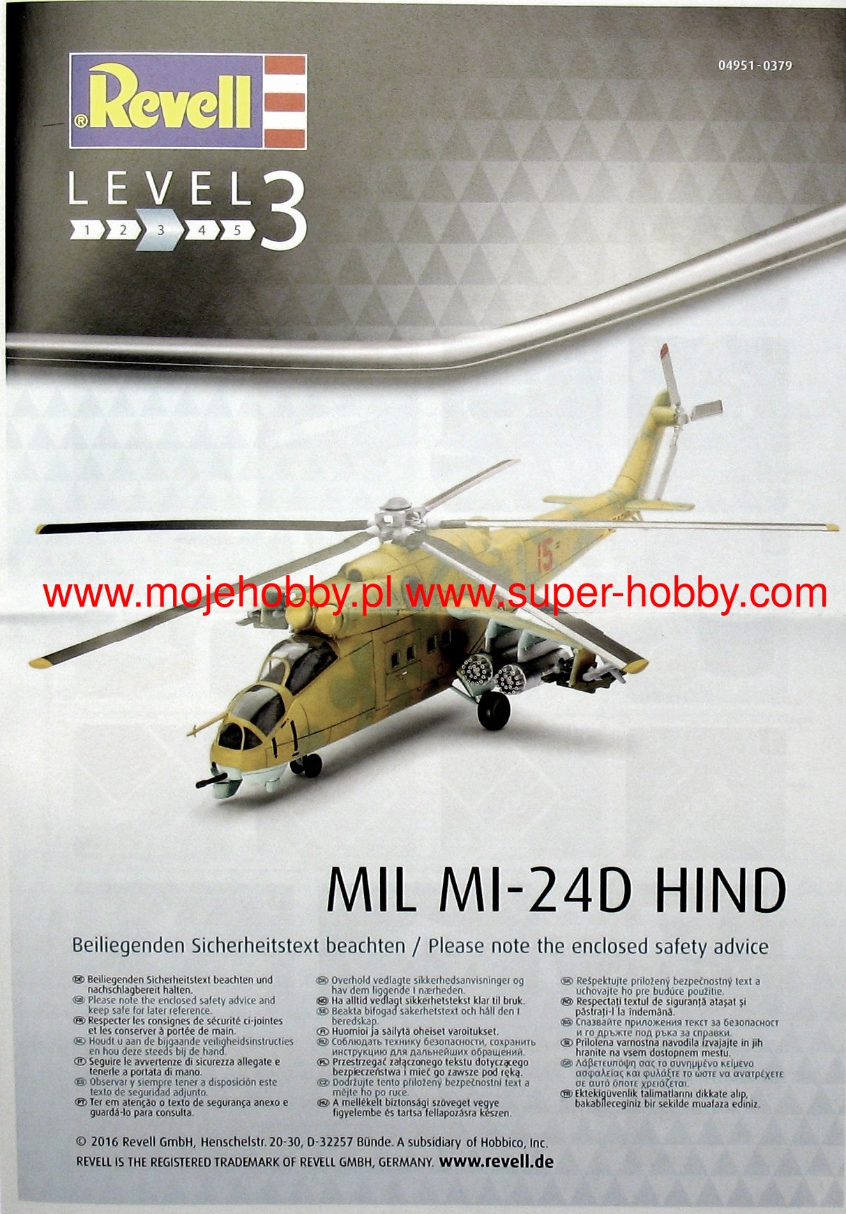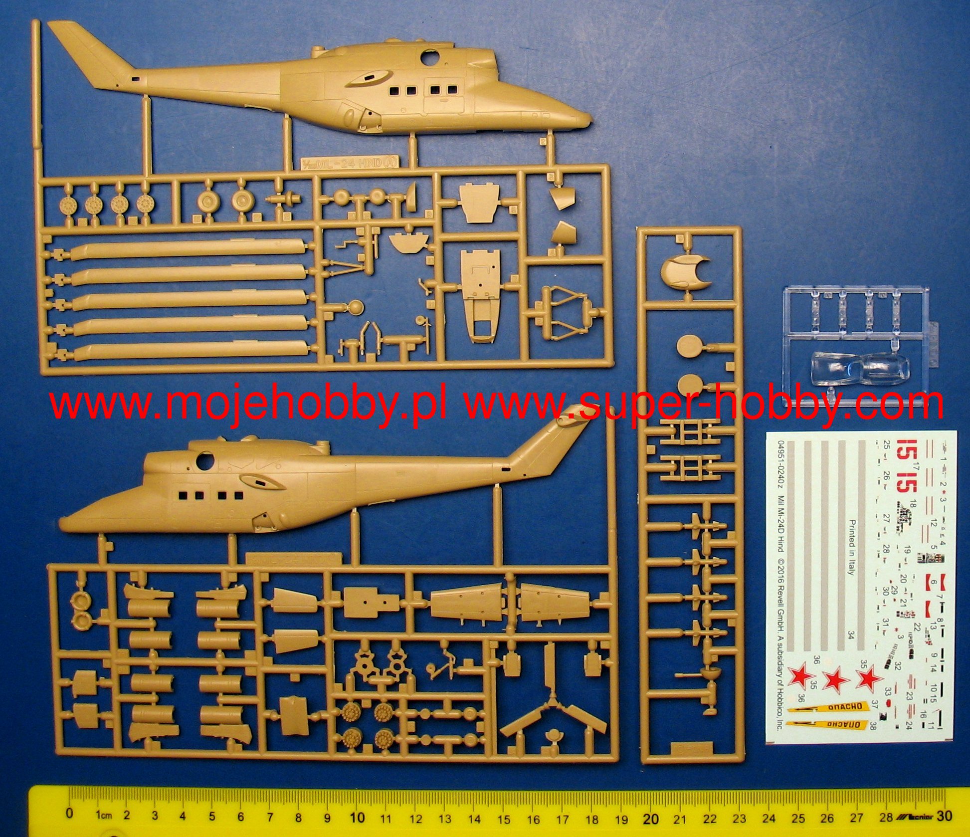Mil Mi-24 (kod NATO: Hind) był ciężkim śmigłowcem bojowym produkcji radzieckiej o konstrukcji w pełni metalowej półskorupowej, z podwoziem chowanym, w układzie klasycznym z wirnikiem nośnym i śmigłem ogonowym na belce . Napęd zapewniał dwa silniki turbowałowe TW-3-177MT różnych modeli o mocy 2200 KM każdy. Oblot pierwszego prototypu miał miejsce we wrześniu 1969 roku, a produkcja seryjna trwała od 1970 do 1983 roku. Głównym impulsem do opracowania Mi-24 były nowe założenia taktyczno operacyjne Armii Radzieckiej, która w działaniach ofensywnych zaczęła pod koniec lat 60. XX wieku kłaść ogromny nacisk na wykorzystanie szturmowych śmigłowców bojowych. Pierwotnie nieźle w tej roli sprawdzał się Mi-8, jednak bazując na jego podzespołach postanowiono na stworzenie śmigłowca potężnie uzbrojonego, szybszego oraz wciąż mogącego przewieź do 8-10 żołnierzy desantu. Tak narodził się Mi-24 maszyna na swój sposób rewolucyjna, unikalna w swej koncepcji i w chwili wprowadzenia do służby (początek lat 70. XX wieku) deklasująca wszelkie konstrukcje zachodnie. Stworzono bardzo wiele modernizacji wersji podstawowej (Mi-24). Pierwszą chronologicznie była wersja Mi-24A,w której polepszono ergonomię maszyny oraz dodano mocniejsze silniki. Później opracowano model Mi-24D, który cechował się innym kształtem kabiny już w układzie tandemowym oraz innym ułożeniem śmigła ogonowego. Powstała też wersja eksportowa o nazwie Mi-35. Bardzo udany Mi-24 był szeroko eksportowany do krajów Układu Warszawskiego, ale też np. Libii czy Etiopii. Śmigłowce Mi-24 wzięły udział w licznych konfliktach zbrojnych, m.in.: w toku interwencji wietnamskiej w Kambodży, ale przede wszystkim w wojnie w Afganistanie (1979-1989), gdzie Mi-24 stały się „koniem roboczym” wojsk radzieckich, cechując się przy tym wysoką skutecznością. Mudżahedini śmigłowcom Mi-24 nadali przydomek „diabelski rydwan”. Co oprócz modelu będę potrzebować do jego sklejenia?