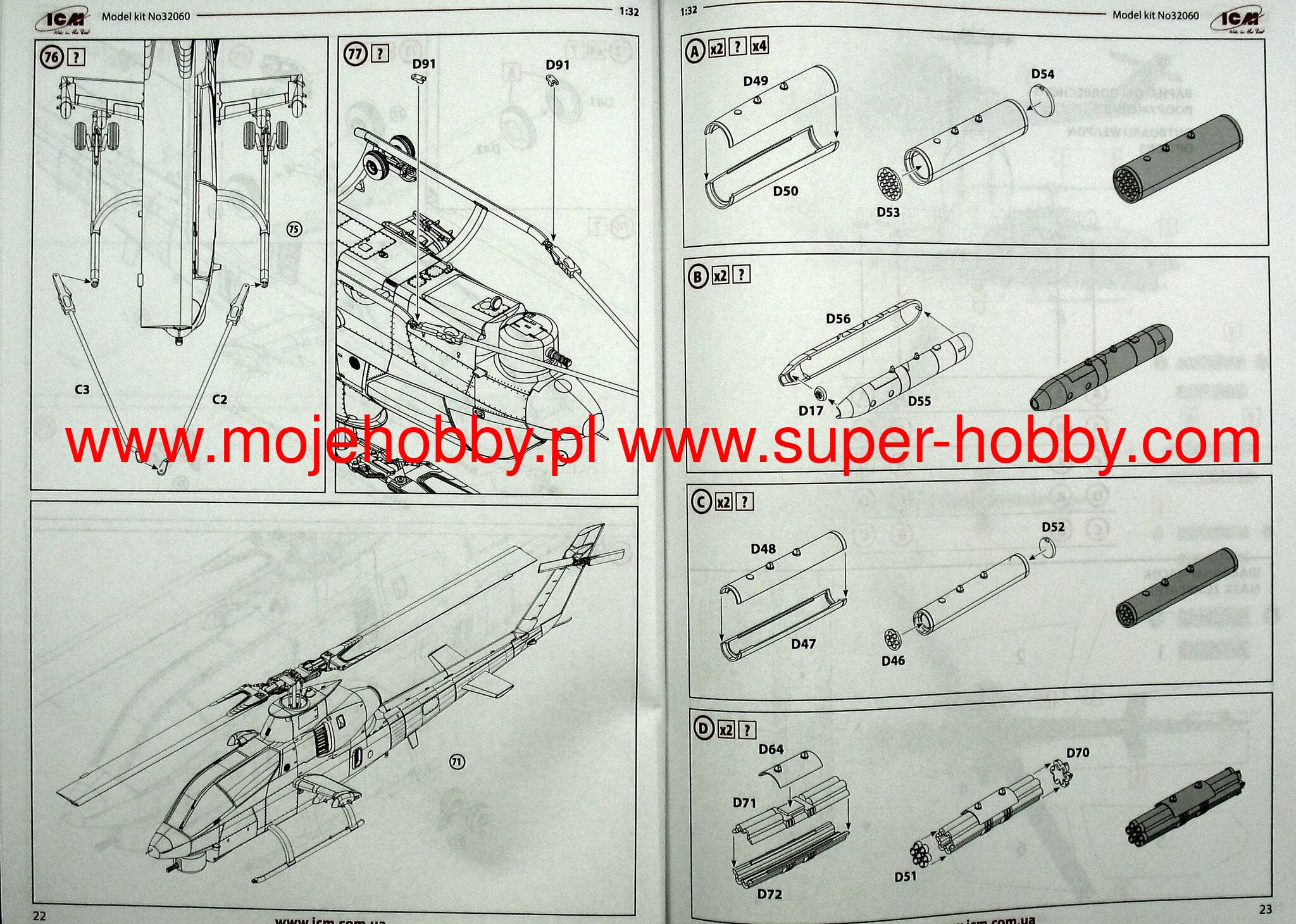 The AH-1 Cobra helicopter (Bell 209) is an attack helicopter in the classic layout, using many components of its "big brother" UH-1 Huey. The first flight of the AH-1 prototype took place on September 7, 1965 and the helicopter entered mass production in the same year. During the Vietnam War, 1,126 machines of the G model were produced, of which 279 were lost in combat. Due to the very high reliability of the structure, small side profile and good performance, the helicopter remains in service to this day in the US Marine Corps. The AH-1 allowed the US Army to fully implement the theoretical assumption of airmobile infantry ("air cavalry") through the fire support of landing infantry units. Today, the AH-1 Cobra is primarily used against an armored celon. From 1965, several versions of this successful helicopter were created, including: AH-1G (basic version), AH-1J (two-engine version), AH-1Q (version armed with TOW missiles). Technical data: Top speed: 333 km / h; maximum range (depending on version): 507-574km, armament: fixed-1 20mm M197 three-barrel cannon, slung rockets, guided missiles, unguided missiles and cannon pods.